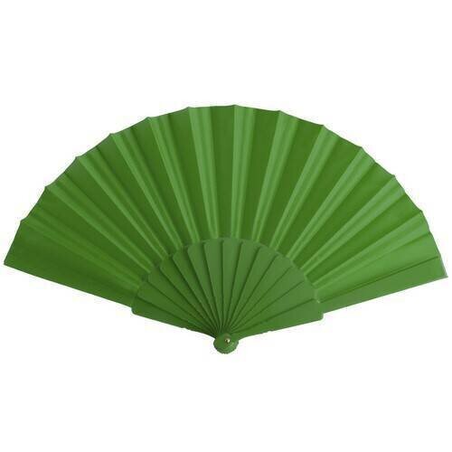 ABANICO DE TELA Y PVC PRESENTADO EN CAJA VERDE