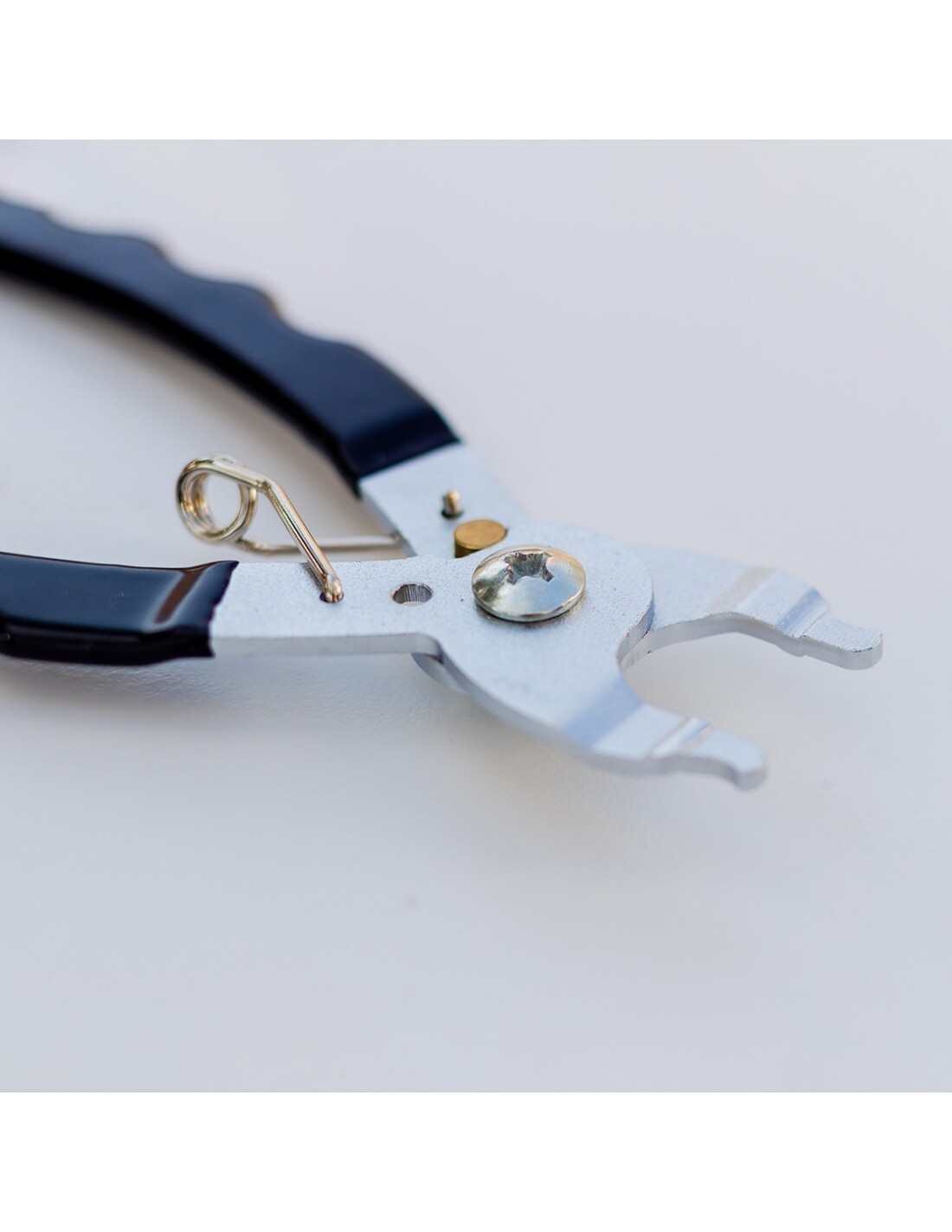 | Alicates para colocar el cierre rápido de su cadena al instante y sin esfuerzo. Material: Acero con revestimiento de goma en el mango Características: · Peso: 95 g. · Medida: 16 cm. Caja: 100 uds. |