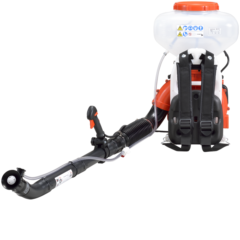 Rendimiento profesionalEl potente motor de 2 tiempos de clase profesional y especialmente diseñado para este fin asegura al atomizador ECHO MB 5810 la energía suficiente para trabajar sin contratiempos, con un excelente ratio peso-potencia y funcionamiento a altas revoluciones. Perfecto para el mantenimiento y tratamientos fitosanitariosEl atomizador ECHO MB 5810 es perfecto para el mantenimiento y tratamiento fitosanitario de frutales, hortalizas, árboles, etc. en forma de neblina con líquido y opcionalmente con polvo. Su boquilla es ajustable en 6 puntos con distintos perfiles que permiten al usuario ajustar el abanico de pulverización, la distancia y el caudal. Nuevo ventilador y cuerpo de soplador optimizado específicamente para mejorar el flujo del líquido en su interior. Tanque semitransparente presurizado para facilitar el control de nivel del producto químico y fácil drenaje. Incluye grifo para controlar el flujo del producto químico, con tapón para drenaje y mando ergonómico ajustable para controlar el motor. Con un plus de confortEl atomizador ECHO MB 5810 incorpora un conjunto de especificaciones diseñadas para mejorar la comodidad del usuario que lo emplea en largas jornadas de trabajo y viene equipado con un protector extra acolchado, ventilado para refrescar la espalda del usuario, con tiras de soporte acolchadas, fácilmente ajustables y un excelente balance de pesos que reduce drásticamente el cansancio y hace que su uso sea más fácil. El depósito transparente facilita el control del nivel de líquidos al usuario y el acceso al filtro de aire sin herramientas reduce el tiempo de mantenimiento. Durabilidad profesionalEl atomizador ECHO MB 5810 está diseñado para ser ligero, pero sin dejar de lado la durabilidad característica de la marca. Presenta diferentes aspectos que le brindan una durabilidad claramente profesional. Los filtros de aire "heavy-duty" para un trabajo intensivo aseguran que el motor siempre funcione sin problemas y esté libre de polvo o escombros. Por otra parte, su bastidor tipo "L" ofrece la máxima resistencia a los golpes. La solución anti COVID-19Con el atomizador ECHO MB 5810 tendrás también el arma definitiva para luchar contra la COVID-19. Es especialmente útil para desinfectar parques y jardines públicos, áreas alrededor de escuelas, zonas deportivas, paseos, plazas o zonas residenciales en el exterior. Cualquier espacio quedará libre de virus de manera fácil, rápida y eficiente. Kit de polvo opcionalEl kit de polvo opcional MBAD 5810 permite que el atomizador ECHO MB 5810 sea aún más polivalente, dotando a este modelo de un compartimento específico para dosificar y regular el polvo a la salida. |