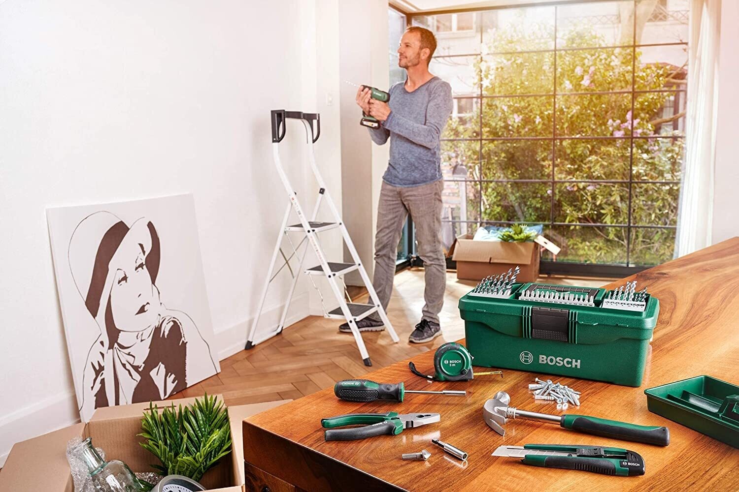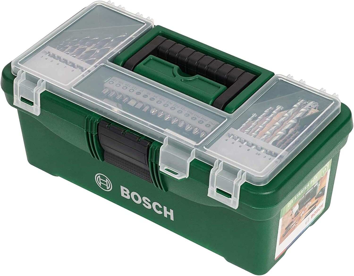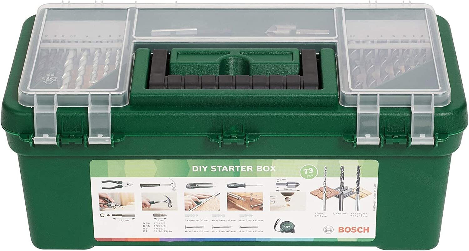 Bosch Caja de herramientas básica con 73 accesorios y complementos de bricolaje, para madera, piedra y metal, bricolaje, accesorios para herramientas de perforación y atornillado