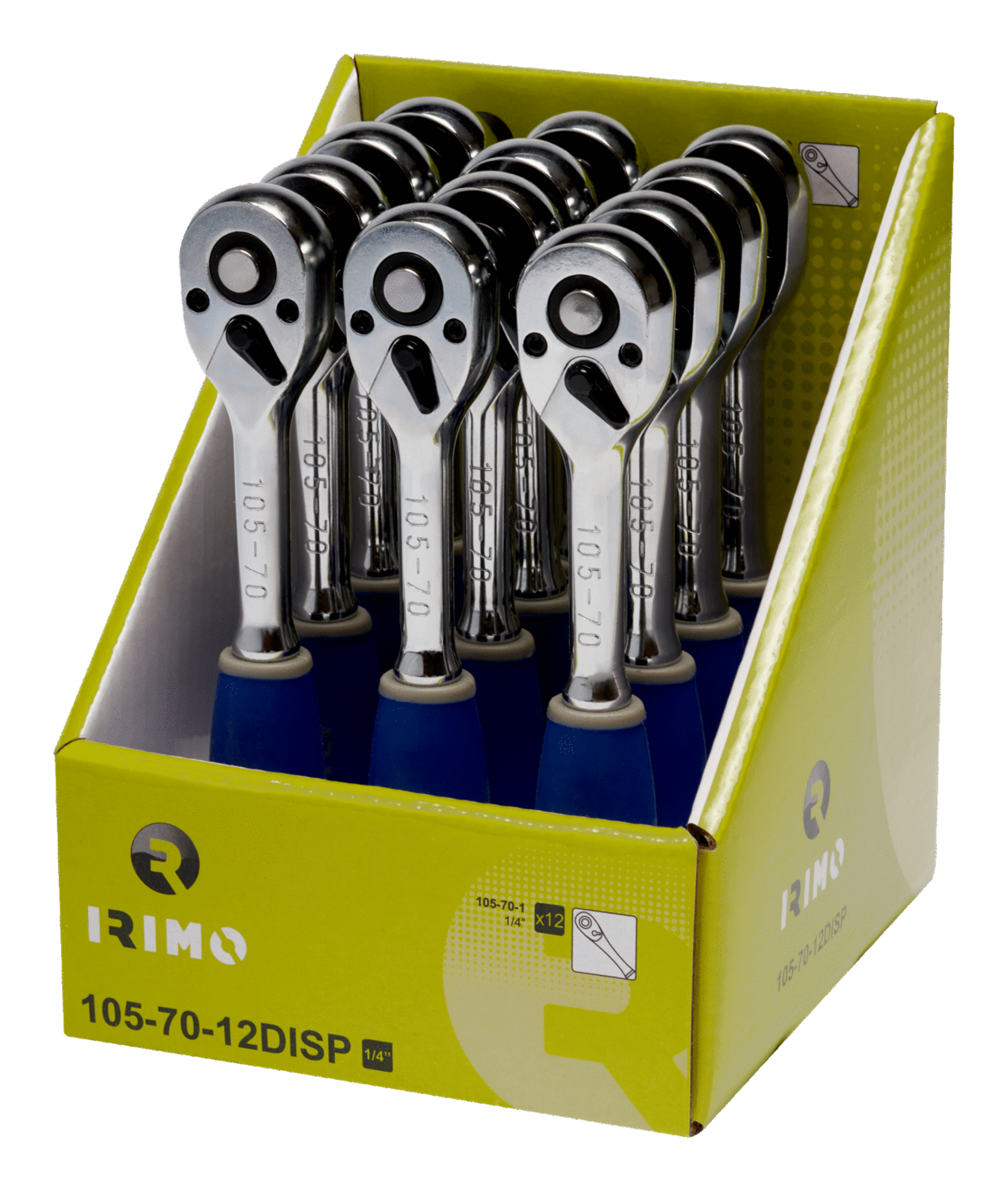 Carraca reversible tipo pera de 1/4" en expositor 105-70-12DISP
