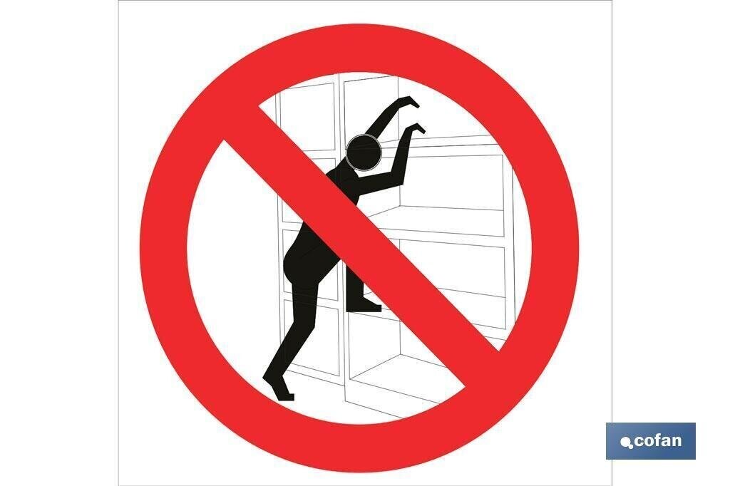 | Señal Pictograma "prohibido escalar estanterías" en varias medidas y materiales. 1ud |