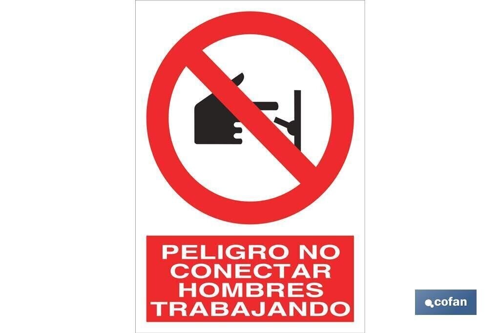 | Señal de prohibición, Peligro no conectar hombres trabajando. 1ud |
