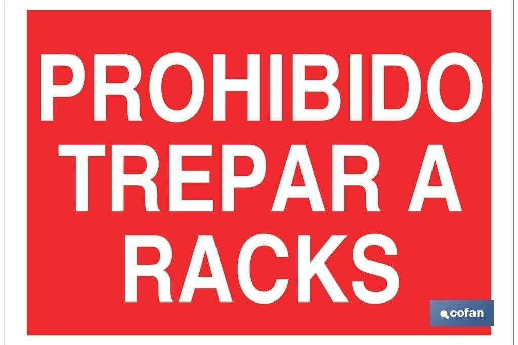 | Señal Texto "prohibido trepar a raks" en varias medidas y materiales. 1ud |