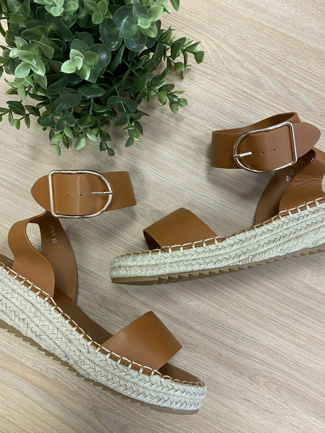 | Sandalia Mykonos. Sandalia en color cuero marrón con suela de esparto y pulsera regulable en el tobillo. Talla habitual. Tallas (36,37,38,39,40,41) |