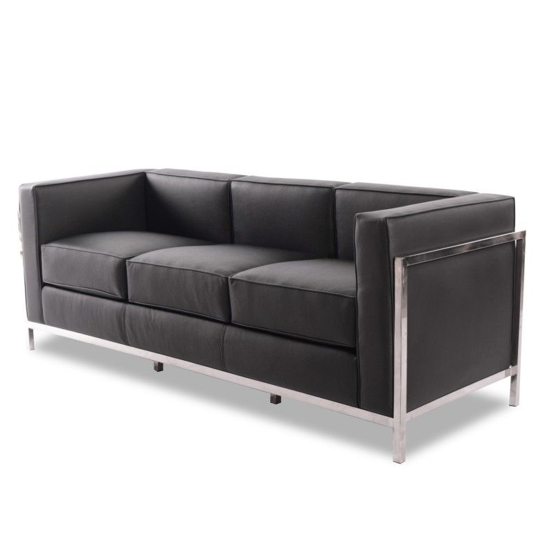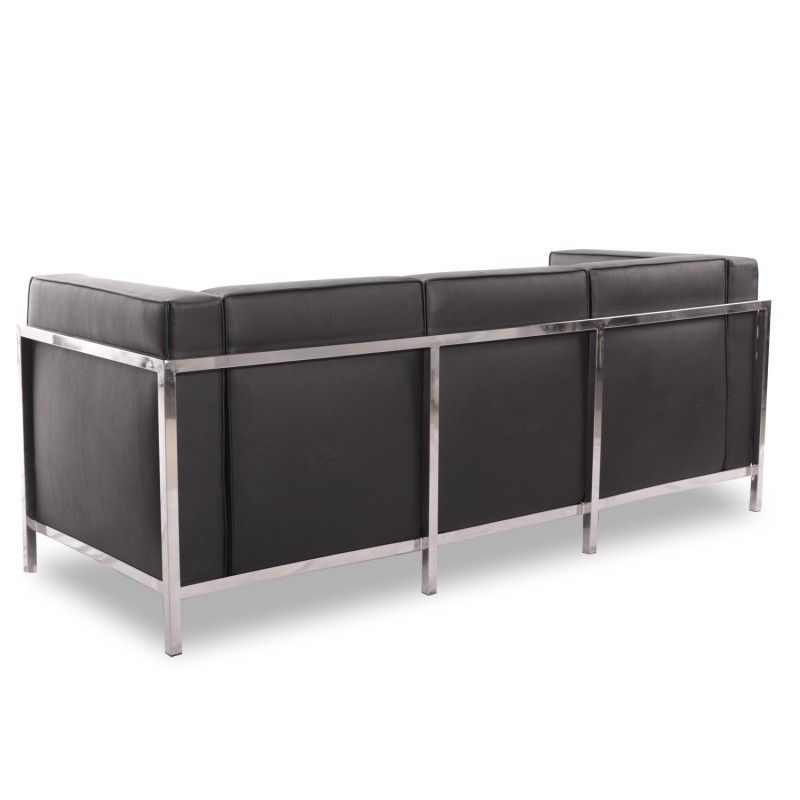 Sofá LOBBY, 3 plazas, acero inoxidable, similpiel negra