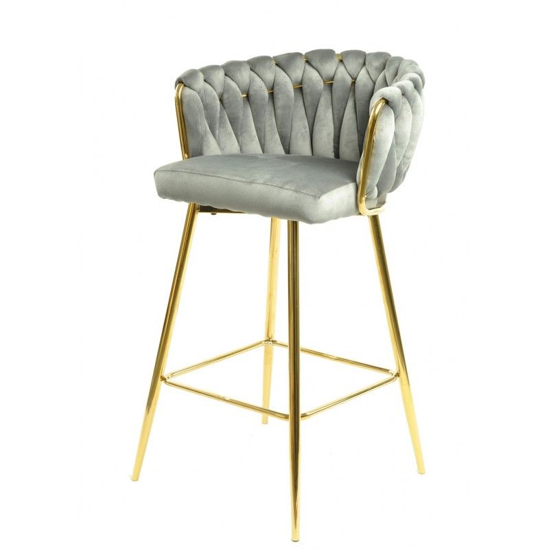 Taburete KING, metal, cromado dorado, tapizado velvet gris oscuro. 4 Sillas.