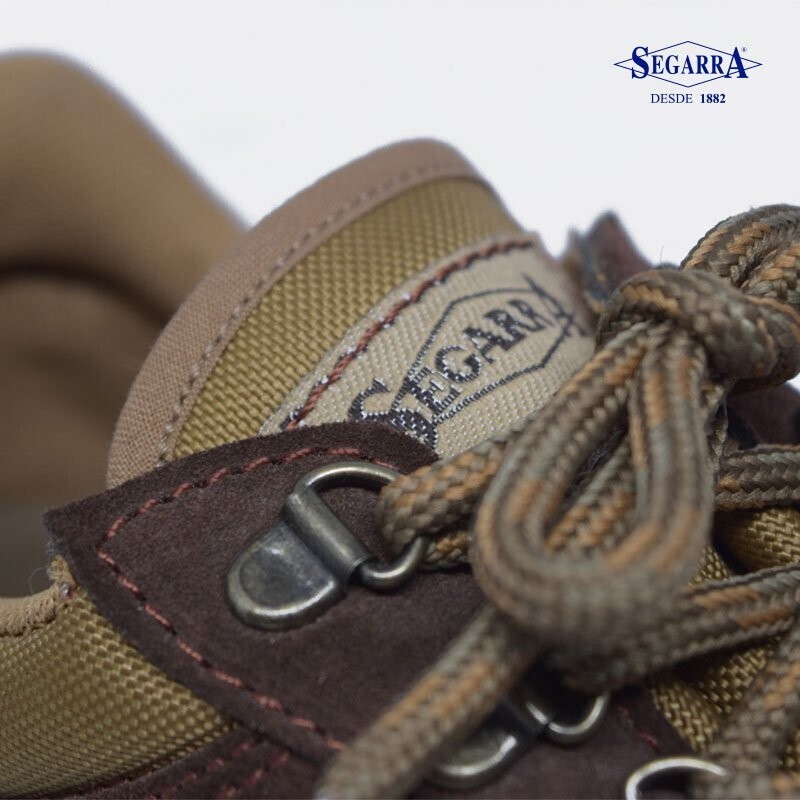 | Tallas: 36-48 Parte superior: Serraje marrón de 1.4 a 1.6 mm con cordura Forro: Velour marrón Plantilla: Extraíble de EVA termoconformada Suela: Caucho color negro modelo Maxtraction antideslizante, resistente al calor por contacto Fabricación: Caucho natural vulcanizado directamente al corte Ganchos: Hierro pavonado Otras características: Ideal para zonas templadas y frías Uso: Senderismo de media montaña y trabajos de campo |