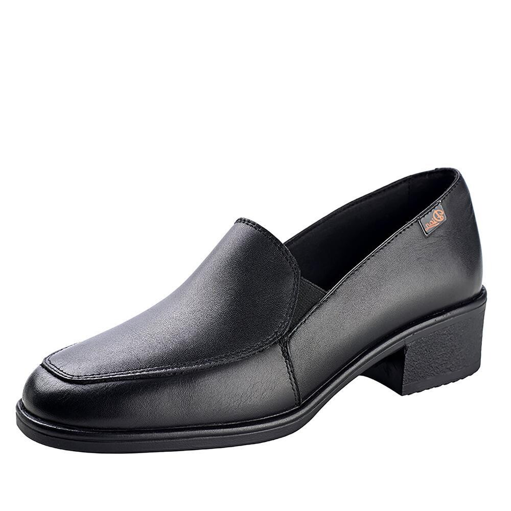 | Zapato de trabajo femenino con cierre de elásticos laterales, de piel napa flor, forrado en la pala con microfibra técnica. Horma recta de puntera redondeada. Contrafuerte de dureza suficiente para sujetar el calcáneo. Plantilla acolchada de tejido sobre espuma de poliuretano con tratamiento antibacterias y carbón activado. Suela de poliuretano antideslizante. Normativa: certificado ce, norma EN-ISO-20347. Nivel de protección SRA+O1+FO. SRA = antideslizante en baldosa con detergente como lubricante. O1 = parte trasera cerrada, absorción de energía en el tacón, suela con resaltes. FO = resistencia a los hidrocarburos de la suela. TALLA:35-42 COLOR: NEGRO |