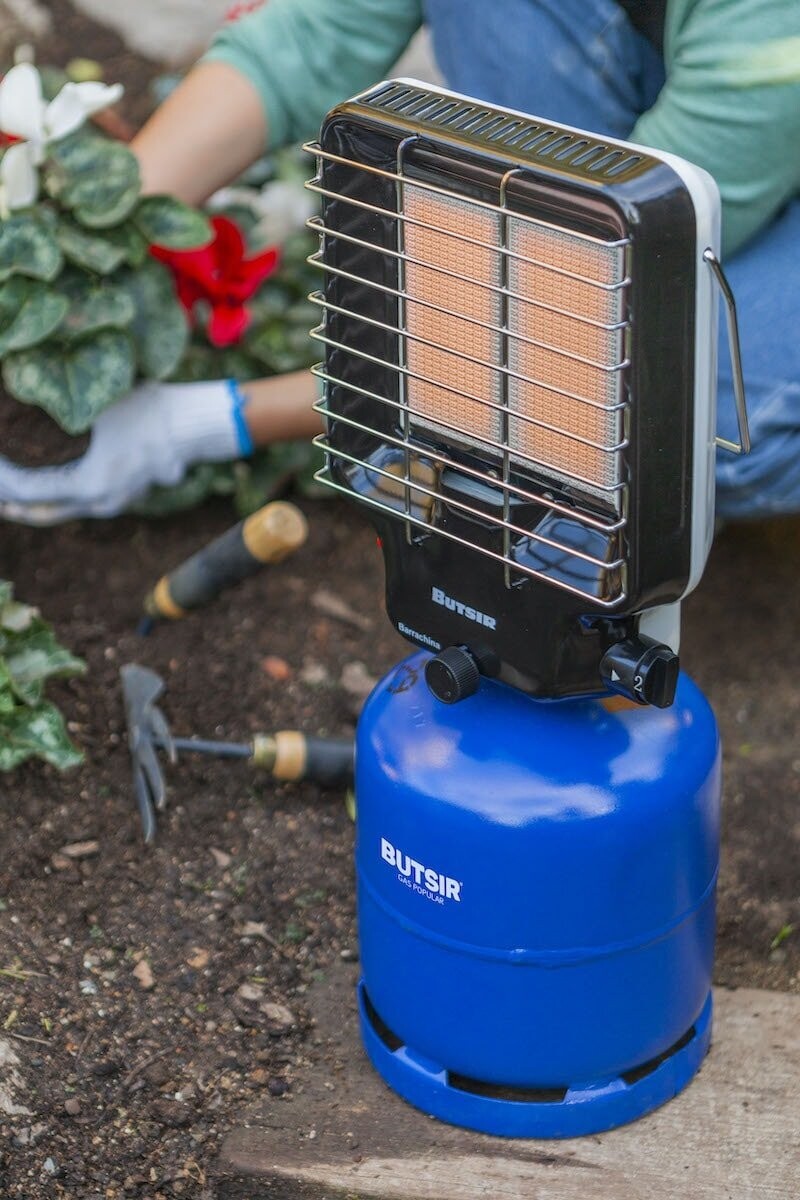 | Botella de gas butano comercial para aparatos de rosca propia BUTSIR. Medidas: Ø 20,6 cm x 26,8 cm |