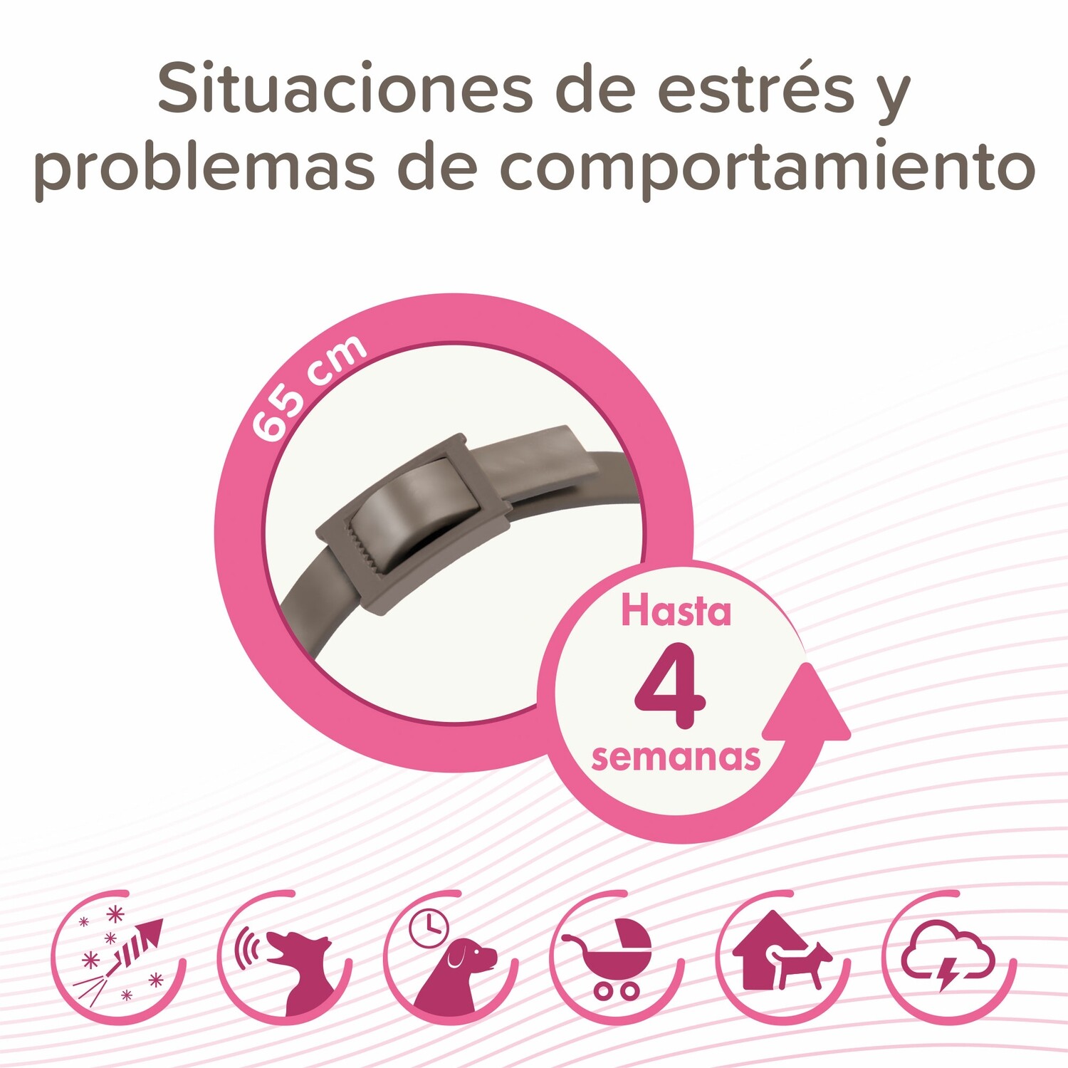 DescripciónEl Collar CaniComfort® es ideal en situaciones de estrés y para perros con problemas de comportamiento. Basta con colocar el collar de 65cm en tu perro para que el producto libere las feromonas que harán que tu perro se sienta a gusto y relajado. Los estudios clínicos demuestran que las feromonas utilizadas en Beaphar CaniComfort® ayudan en situaciones estresantes y previenen comportamientos no deseados. La feromona de apaciguamiento canino (DAP) es una solución clínicamente probada, simple y efectiva, para ayudar a calmar y tranquilizar a los perros y prevenir comportamientos no deseados tanto dentro como fuera del hogar. DAP tiene un efecto calmante y tranquilizador en perros de todas las razas y edades. La feromona de apaciguamiento canino (DAP) es producida naturalmente por la perra cuando cuida a sus cachorros y es una parte crucial del proceso de unión. Beaphar CaniComfort® contiene una copia sintética de DAP que proporciona un mensaje continuo y tranquilizador para que los perros sepan que esta es un área segura y tranquila. Es especialmente beneficioso cuando hay cambios en el entorno del perro, como una mudanza, un nuevo miembro en la familia, obras en casa o incluso el movimiento de los muebles. Pero se puede usar para ayudar a reducir el estrés y los sentimientos generales de ansiedad en cualquier situación estresante. Beaphar CaniComfort® no afectará a otros animales en el hogar ni sedará a tu perro y puede usarse junto con cualquier medicamento que tu perro pueda estar tomando. Gracias a este collar podrás ir con tu perro a cualquier lugar y asegurarte de que estará tranquilo y relajado. InstruccionesNo abras la bolsa antes de usarla. Coloca el collar alrededor del cuello del perro y desliza el extremo suelto en la hebilla para ajustarlo. Aprieta el collar, dejando espacio suficiente para que dos dedos pasen entre el collar y el cuello. Para los perros en crecimiento, asegúrate de aflojar el collar con regularidad. |