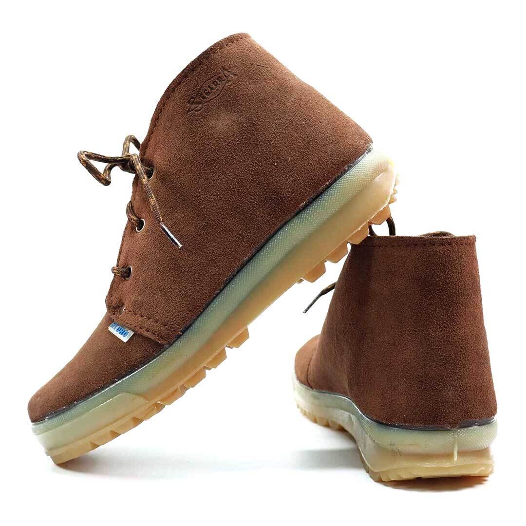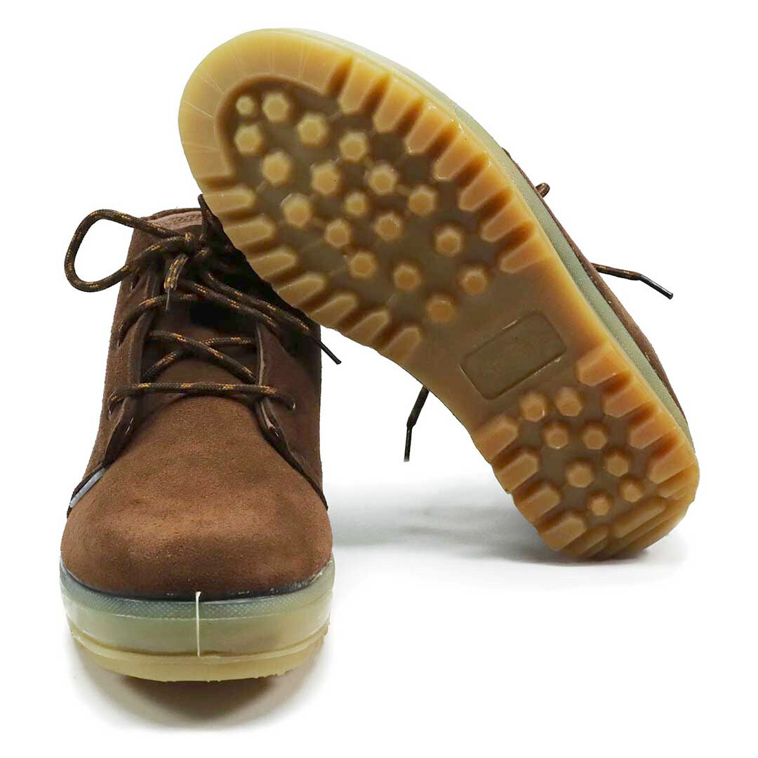 | Tallas: 38-46 Parte superior: Serraje hidrofugado marrón Forro: Cambrelle con ribete de color tostado Plantilla: Extraíble de EVA termoconformada Suela: Caucho color caramelo mod. TEJA Fabricación: Caucho natural vulcanizado directamente al corte Ojetes: Hierro pavonado Otras características: Ideal para zonas templadas y frías Uso: Puestos de trabajo sin riesgo de caída de materiales sobre el pie y actividades al aire libre |