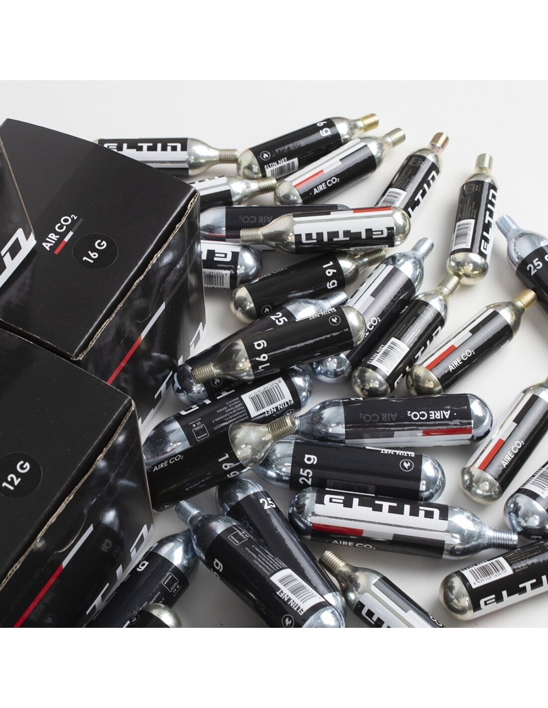 | Cartucho presurizado con 25g de CO2 Pensado para utilizar en cualquier neumático o como recarga de emergencia. No dejes de consultar la imagen con presiones orientativas para acertar con tu cartucho. Rosca de 6 mm (universal) Material: Aluminio 100% reciclable Peso: 95g Medidas: 25 x 105mm Caja: 16 cartuchos Caja grande: 10 cajas |