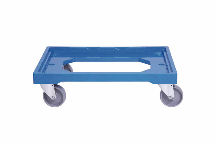 | Carros plataformas bases rodantes de plástico fabricados con materiales resistentes a golpes y aptos para usos intensivos en centros logísticos y de distribución. Capacidad de carga máxima de 150 Kg. Esquinas reforzadas. Cuatro ruedas para un fácil desplazamiento con carga. |