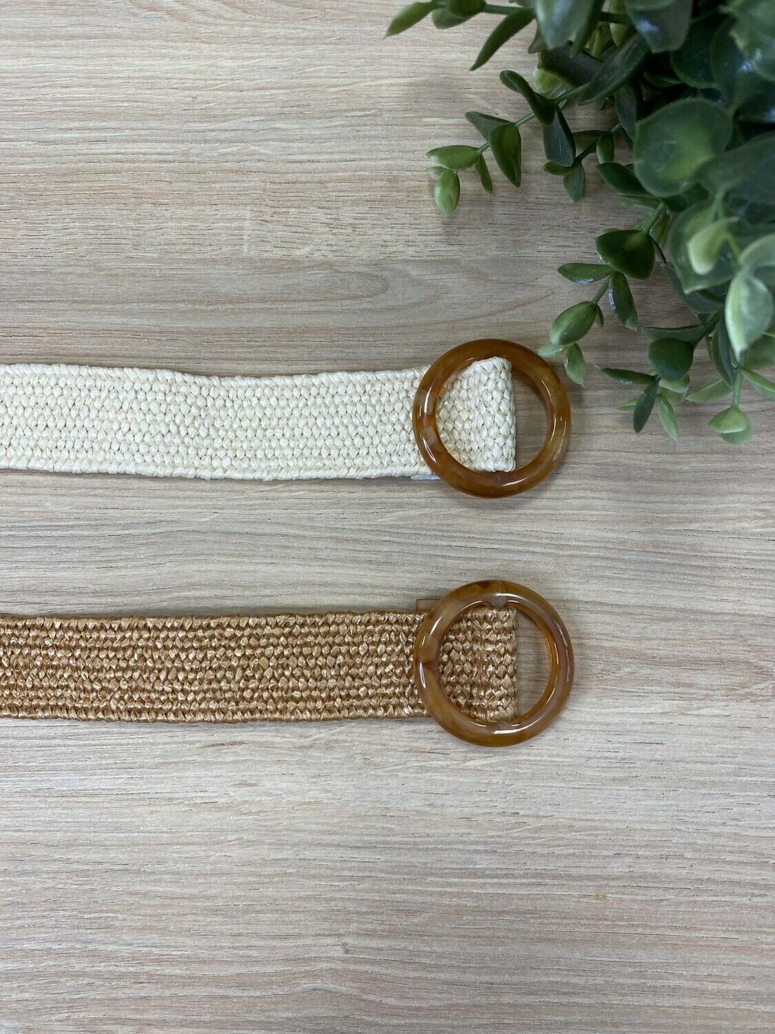 | Cinturón Rafia Circulo. Cinturón de rafia fino elástico con hebilla redonda. |