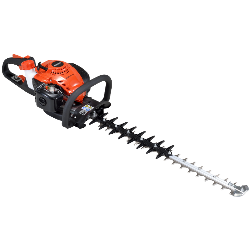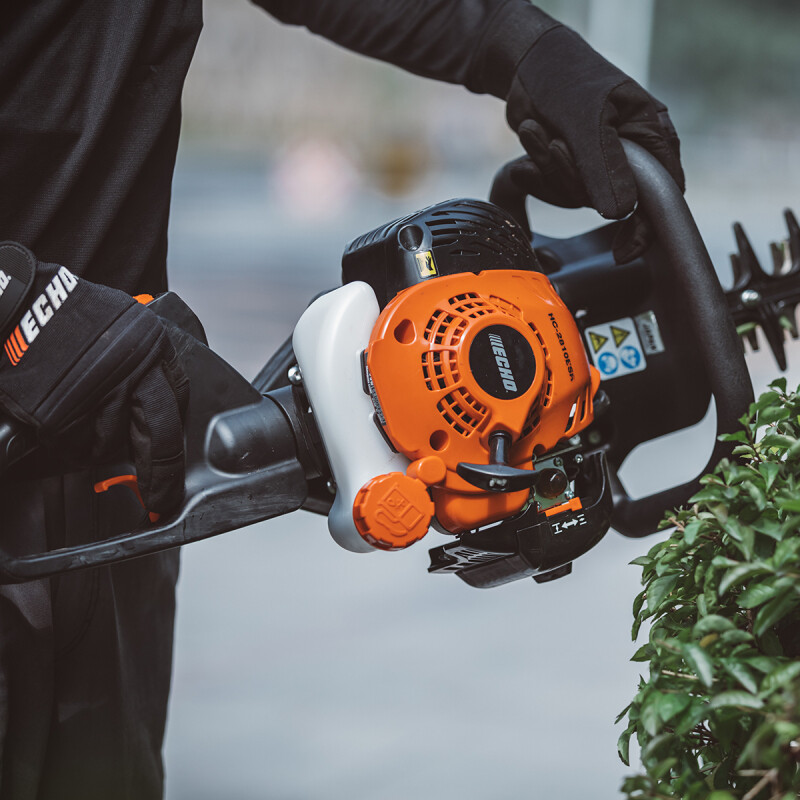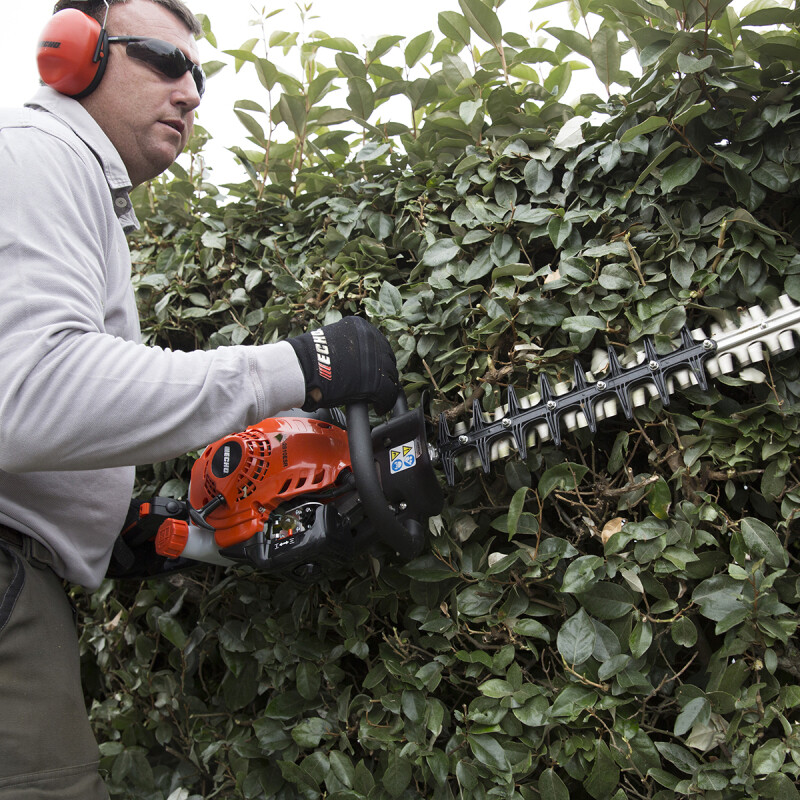 Calidad profesionalFabricado con la solidez y robustez que caracteriza a los productos ECHO, el cortasetos HC 2810 ESR, por su potencia y comodidad, puede ser utilizado tanto por empresas de mantenimiento y jardineros, como usuarios particulares. Su motor diseñado y fabricado en Japón cumple con la segunda fase de la estricta directiva comunitaria de emisiones (EUST5), con menor consumo de carburante, bajo nivel de ruidos y menos emisiones de escape. Sistema de arranque asistido por muelle ES-Start que requiere el mínimo esfuerzo. El motor de arranque sólo requiere un corto tirón del cable. Mínimas vibracionesEl cortasetos ECHO HC 2810 ESR ofrece un mínimo nivel de vibraciones, gracias a su tecnología integrada de bajas vibraciones que reduce enormemente la fatiga del usuario, permitiendo que la tarea de cortar los setos sea mucho menos cansada, sea cual sea la cantidad de setos a recortar. Uso confortable y sin fatiga, incluso para largas jornadas de trabajo. Fácil utilización y mantenimientoCon empuñadura giratoria con cinco posiciones diferentes que permite ajustarlo en un ángulo de 180 grados, para un uso mucho más confortable y una máxima maniobrabilidad, gracias a que gira el manillar, no toda la máquina. Como medida de seguridad, el acelerador se desconecta hasta que el manillar no se bloquea en una posición de trabajo determinada. El cortasetos ECHO HC 2810 ESR es de fácil mantenimiento, ya que presenta un fácil acceso a las partes clave de la máquina. Permite un fácil acceso al filtro de aire sin necesidad de herramientas, incluso llevando guantes. Cuida al usuario y al setoEficaz sistema de refrigeración mediante el cual el aire es empujado hacia el seto, evitando la acumulación de suciedad en el motor. Este sistema de escape superior, con carcasa envolvente, protege al usuario y a cualquier persona que se acerque a la máquina de cualquier quemadura que pueda producirse al tocar el escape caliente. Las emisiones de gases son direccionadas lejos del usuario, con lo que también se previene el calentamiento y la decoloración de la planta. Incorpora funda protectora de la cuchilla, que previene al usuario de posibles accidentes por contacto con la cuchilla. La mejor calidad de corteEl cortasetos ECHO HC 2810 ESR incorpora doble cuchilla cortada con láser y con afilado de precisión, mucho más duradero, que ejecuta un corte mucho más limpio. Con cuchillas autoafilables gracias a la acción de los dientes. El paso de cuchilla de 35mm permite trabajar en las mejores condiciones con distintos tipos de setos. Nuevo ángulo del bastidor que permite un corte perfectamente alineado con el seto y mejor acabado, disminuyendo también la fatiga del usuario. |