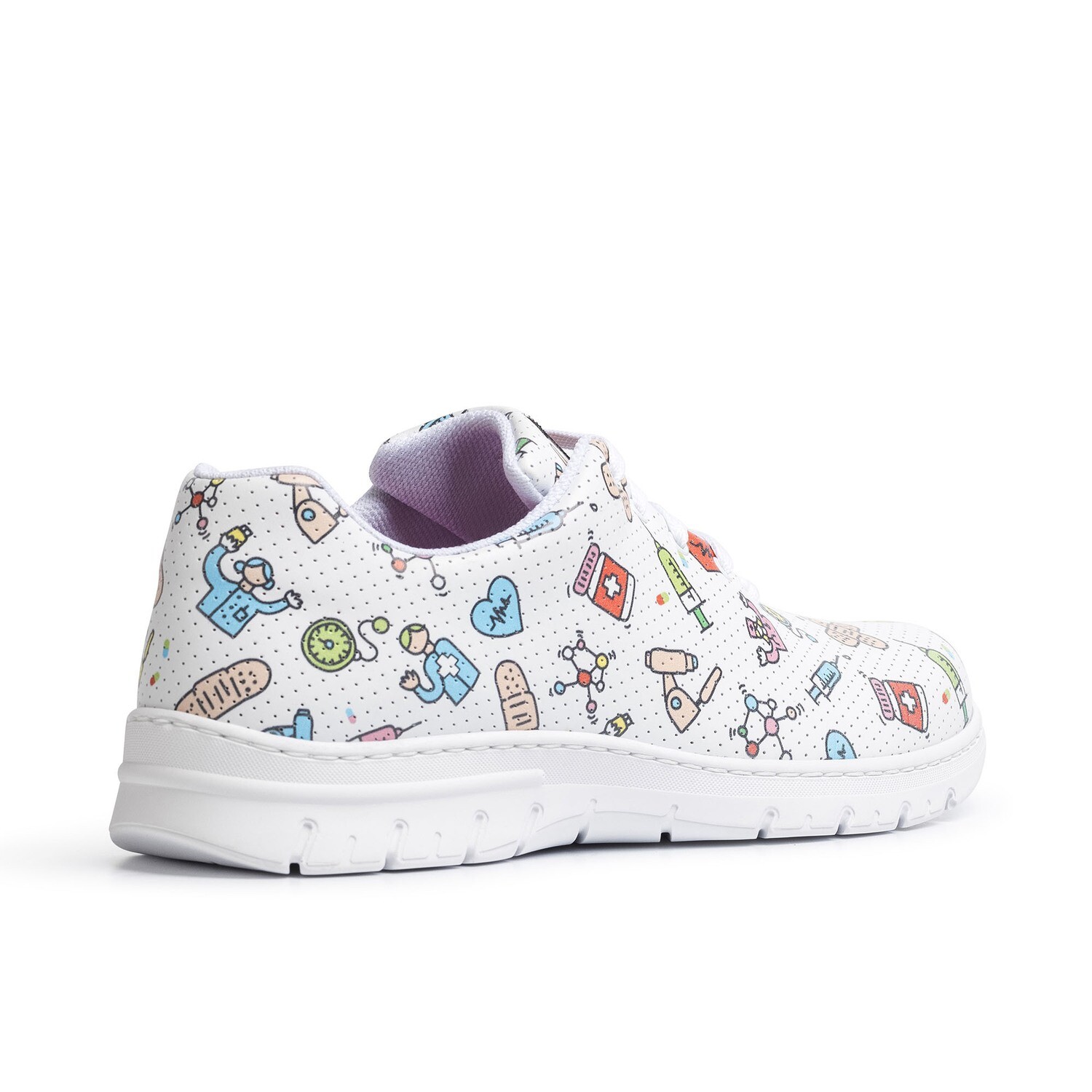 | Zapatilla profesional de trabajo de una sola pieza, sin costuras y con cierre de cordones. Corte de microfibra técnica transpirable, forrado interior de microfibra técnica acolchado. Plantilla acolchada de espuma de poliuretano termoconformado con tratamiento antibacterias y carbón activado. Suela ultra ligera, confortable, flexible y ANTIDESLIZANTE, con diseño de pastillas planas, cantos vivos y acanaladuras amplias para facilitar la evacuación de líquidos. Colores: blanco Tallas: 35/44 |