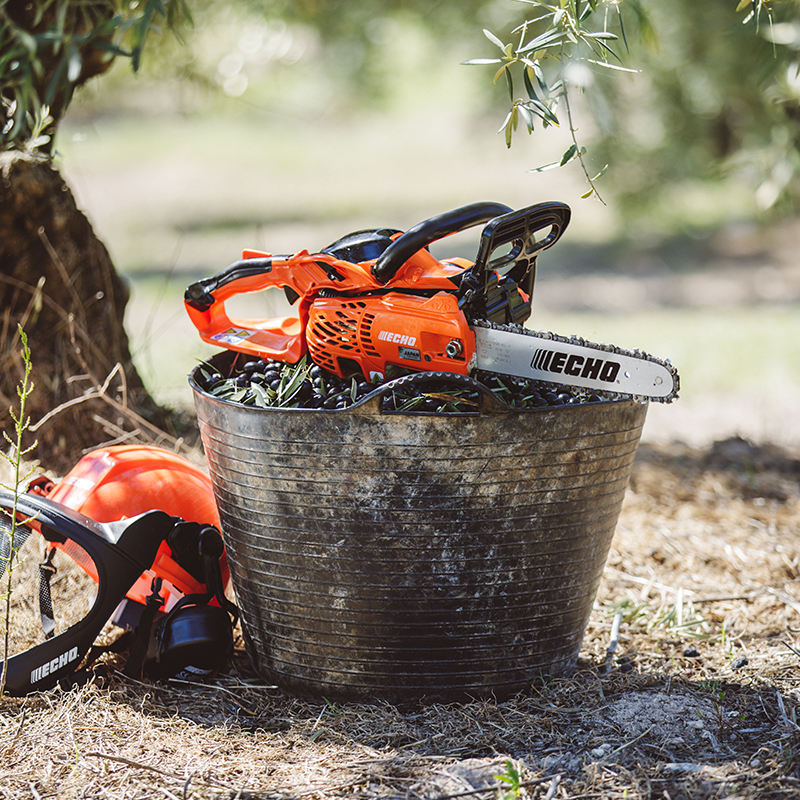 Ligereza y potencia tienen desde ahora un nuevo significadoLa nueva motosierra ECHO CS 2511 WESC 0.043" es el modelo de poda con mango trasero más ligero del mercado (solo 2,6 Kg) y el más potente de su categoría, con 1.52hp y una inmejorable relación peso/potencia. Su sistema de encendido digital CDI mejora el comportamiento de la máquina a cualquier régimen del motor y se ajusta perfectamente a cada condición de trabajo. La Certificación EUST5 (Directiva 2016/1628/EC) supone además de la reducción de emisiones, un importante ahorro en la factura de carburante. Con arranque fácil ES-Start y un eficaz sistema antivibratorio por muelles, forma parte de la exclusiva X-Series de ECHO. Modelo de la gama X-SeriesLa motosierra de poda ECHO CS 2511 WESC 0.043" es ultra profesional, como lo certifica su sello X-Series. Cada uno de los modelos identificados con el distintivo ECHO X-Series disfruta de características y prestaciones específicas, como la ligereza de los materiales, la potencia aumentada, la reducción de las vibraciones o la extensión del tiempo de trabajo, diseñadas para ayudar a los profesionales de la jardinería y forestal a realizar mejor sus trabajos en sus respectivas aplicaciones. Las máquinas que se han ganado el distintivo ECHO X-Series son tan exigentes que solo el trabajo más duro y comprometido puede desafiar los límites de sus capacidades. Cada máquina es probada bajo las condiciones más severas para asegurar un arranque fácil y la mejor aceleración tanto en frío como calor. Ofrecen una mejor filtración del aire gracias a la utilización de un sistema "heavy duty" de gran eficacia que minimizan el riesgo de problemas en el motor y prolonga los ciclos de mantenimiento. Con la potencia y rendimiento de trabajo que desean los usuarios profesionalesEl modelo ECHO CS 2511 WESC 0.043" representa una revolución en el mercado de la motosierra de diseño tradicional con mango trasero por su ligereza y potencia, siendo extremadamente versátil. Su motor profesional 2T de 25 cm3 ofrece la potencia y rendimiento de trabajo que desean los usuarios profesionales. Además, por su construcción compacta facilita las labores de poda entre ramas, algo que suele ser especialmente apreciado por los podadores del olivar. Destaca por su excelente maniobrabilidad gracias a su manillar ergonómico y los mandos de control agrupados. Imprescindible en las labores de poda profesional del olivarGracias a la superficie útil de su espada, la motosierra ECHO CS 2511 WESC 0.043" llega a donde otras motosierras con espada de 25cm no llegan, haciéndose imprescindible en las labores de poda profesional, especialmente en el olivar. Por otra parte, como la palanca de freno no interfiere con la espada gracias a estar desplazada hacia la izquierda, el usuario puede apurar el corte sin obstáculos. Sin renunciar a especificaciones y equipamientoEl excelente diseño de la motosierra CS 2511 WESC 0.043" ha permitido a ECHO realizar una máquina profesional ligera sin tener que renunciar a especificaciones y equipamiento. Dispone del aclamado sistema de arranque fácil ES de Echo, que reduce enormemente la fuerza necesaria para arrancar la máquina. Monta espada profesional de ¼ con galga de 0.043" y piñón en la punta, para un corte preciso y limpio; retenedor de cadena rotativo profesional; estárter de retorno automático y bomba de engrase profesional ajustable que, accionada por el embrague, permite al usuario el control del flujo de aceite mediante un tornillo situado en la parte superior para un funcionamiento óptimo. De este modo reduce de forma considerable el consumo de aceite y mantiene la cadena perfectamente lubricada. Fácil limpieza y rápido mantenimientoSu filtro de aire en dos piezas de nailon de fácil limpieza, el acceso a la bujía con solo separar un clip de cierre y detalles como los tapones sobre dimensionados para facilitar el repostaje de carburante y aceite de cadena, el pomo-herramienta o la tuerca imperdible en la tapa de cadena, son la mejor muestra de ECHO está siempre pendiente de las necesidades de los usuarios de sus máquinas. El pomo de arranque encaja con los tapones de gasolina y aceite para facilitar su manipulación. Incluso en las condiciones de trabajo más desfavorablesEl sistema de prefiltrado G-Force supone una menor exposición del motor al polvo y los residuos para reducir la necesidad de mantenimiento del filtro de aire y aumentar su vida útil. La rejilla de alta densidad permite además disminuir la entrada de agujas de pino y otros restos de poda. Para trabajar con palmera u otros árboles que desprendan mucha suciedad o fibras hay también disponible una rejilla especial extra que evita la entrada de suciedad en las condiciones de trabajo más desfavorables. Disponible con cadenas de ¼ y 3/8 de bajo perfilLa potencia de la motosierra de poda CS 2511 WES permite a ECHO ofrecerla en dos versiones: una estándar con espada de 25cm de longitud y cadena de ¼ 0.043" y una segunda versión con espada de 30cm y cadena profesional de 3/8. Ambas están diseñadas para soportar largas jornadas de trabajo sin fatiga y permitir un fácil mantenimiento, evitando de este modo pérdidas d |
