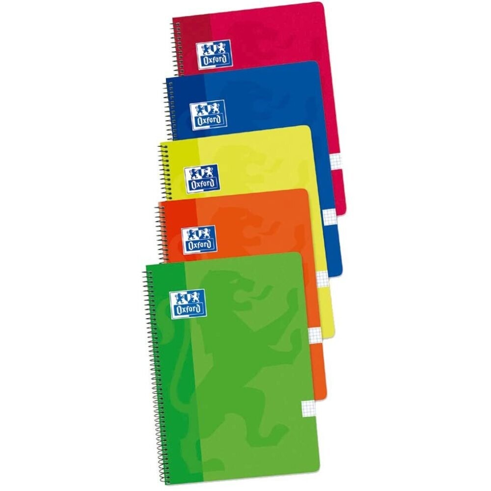 | Oxford Pack de 5 Blocs ( 1 de regalo) Colores de los cuadernos: Lima, Rojo, Naranja, Verde, Azul Marino. Papel Optik Paper 90 gr. Tapas blandas de Cartón. Formato folio de 80 hojas y Cuadrícula 4x4 con margen. Multicolor. |