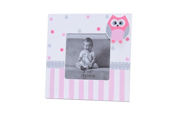 PORTAFOTOS CUADRADO CON MOTIVO BUHOS ROSA
