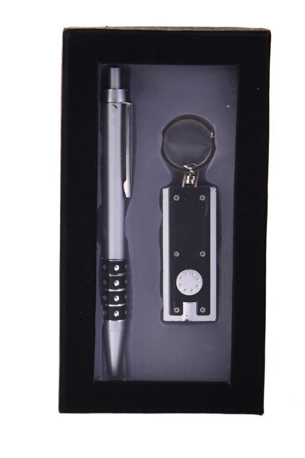 SET BOLIGRAFO + LLAVERO LINTERNA LED ESTUCHE NEGRO