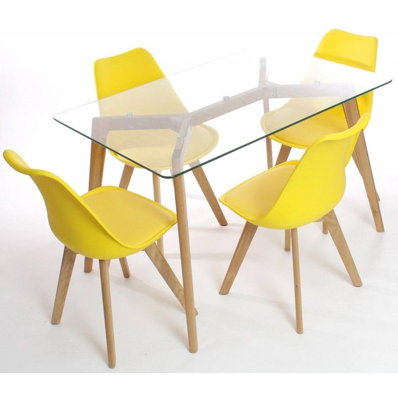 Silla TORRE 4patas ( SU ), madera, polipropileno y cojín amarillo 4 sillas