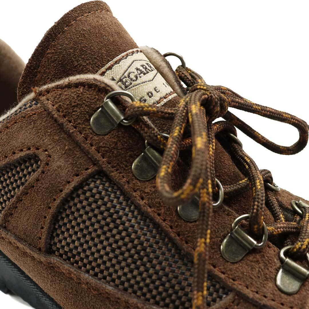| Tallas: 39-46 Parte superior: Serraje marrón de 1.4 a 1.6 mm con cordura Forro: Velour marrón Plantilla: Extraíble de EVA termoconformada Suela: Caucho color negro antideslizante modelo Teja Fabricación: Caucho natural vulcanizado directamente al corte, cosido strombel Ganchos: Hierro pavonado Otras características: Ideal para zonas templadas y frías Uso: Senderismo de media montaña y trabajos de campo |