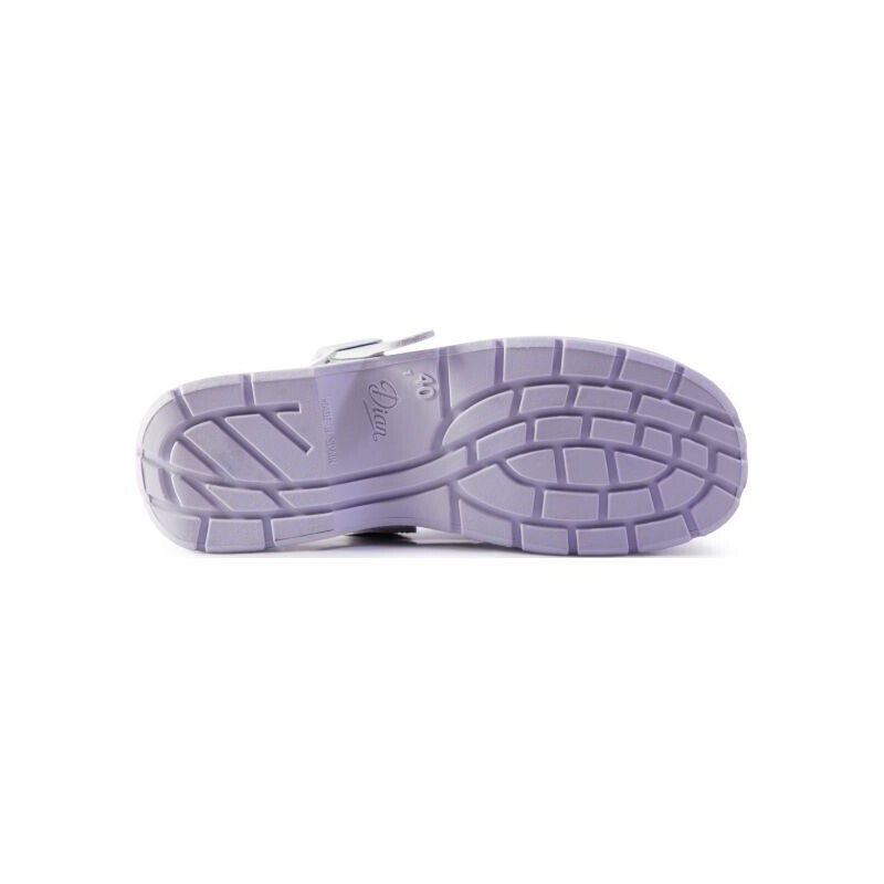 Zuecos de trabajo de piel no porosos, con correa de sujeción en el talón, acolchado en el empeine para evitar roces. Cabeza redonda y forma recta. Estos zuecos Dian, cuentan con una plantilla acolchada con forro ON-STEAM. La suela de PVC modificado con nitrilo tiene una ranura que hace que estos zapatos dian sean unos zuecos antideslizantes que facilitan la descarga de líquidos. Principales características de DIAN 1805 PIEL