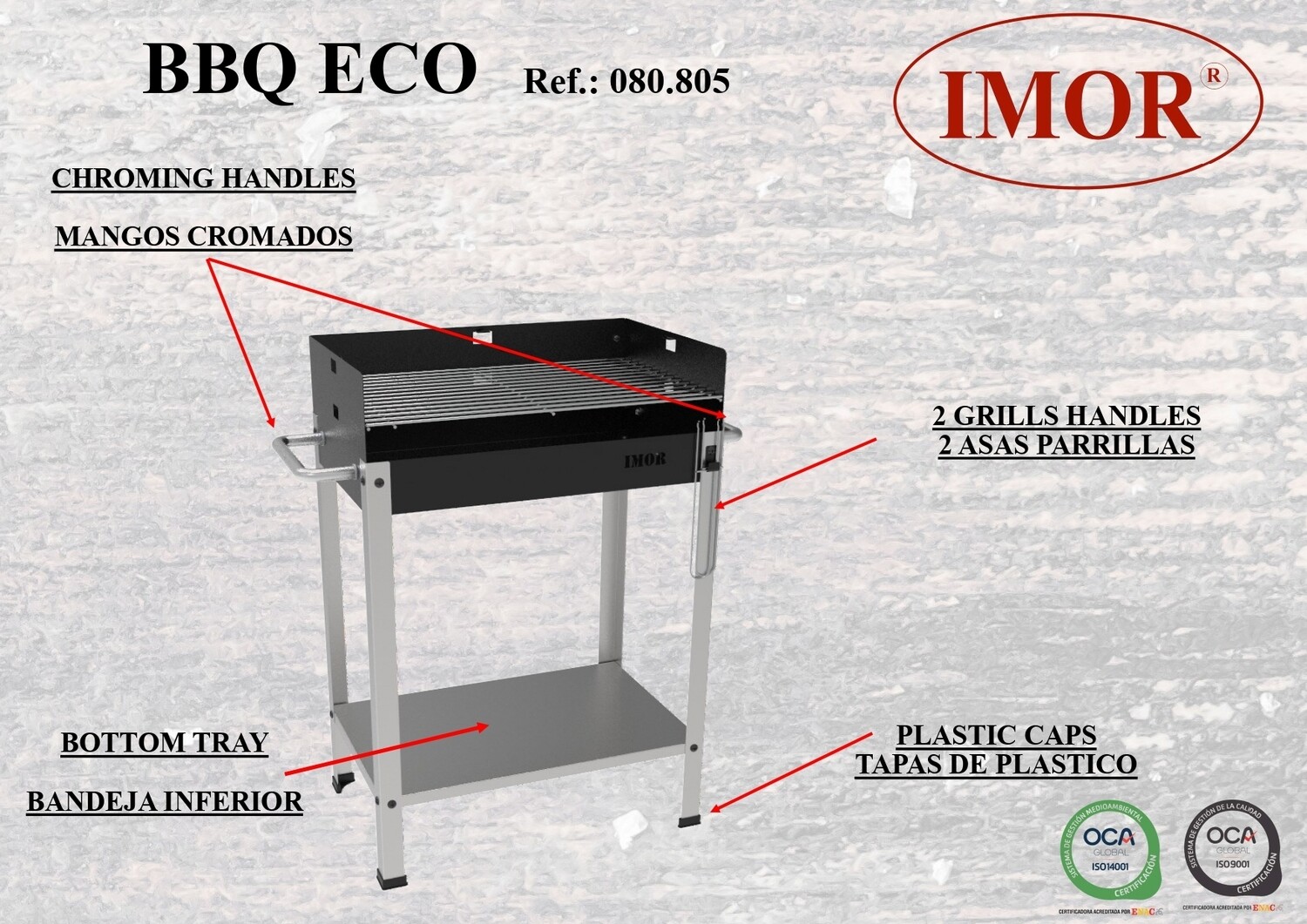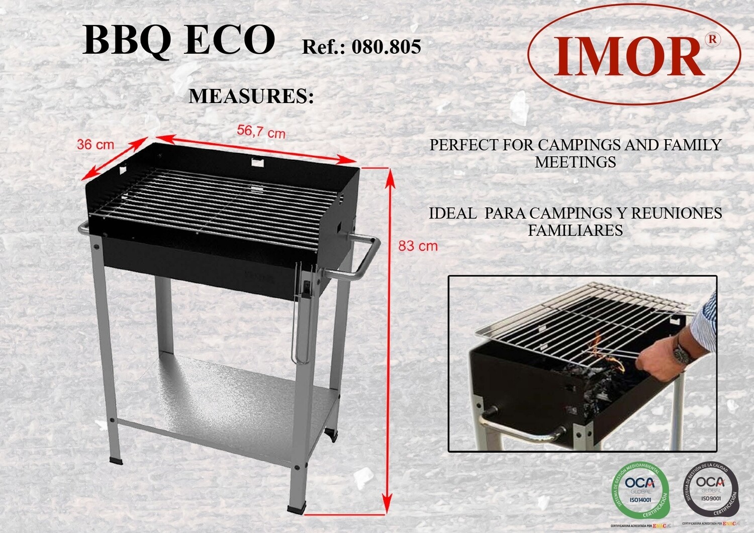 | Barbacoa BBQ ECO Barbacoa para carbón, parrilla cromada ajustable en dos alturas. Mangos cromados. Con dos asas para parrillas y bandeja inferior. Ideal para camping y reuniones familiares. 56.7x36x83 cm |
