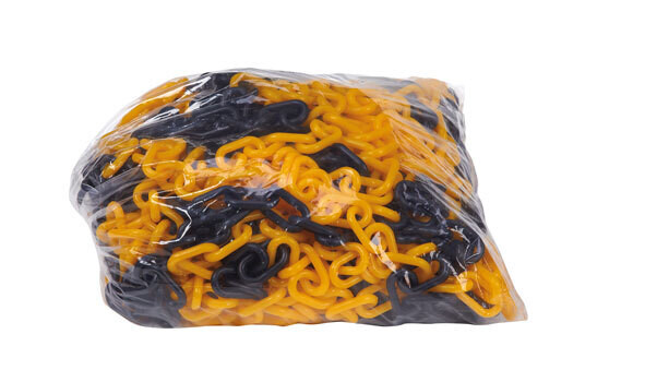 | Las cadenas de plástico en bolsa en color negro y amarillo ,se aplican en trabajos de limitaciones de paso. Cadena de 6 milímetros de diámetro y 25 metros. Nota importante: Las cadenas comerciales de hierro cincado e inox, no son ensayadas con respecto a la resistencia en el sentido de DIN 685 Parte 3, y no pueden ser empleadas como medio de elevación de carga, medio de limitación de correa, o medio de transporte, en el sentido DIN 15003, así como tampoco para la sujeción estática de cargas. |