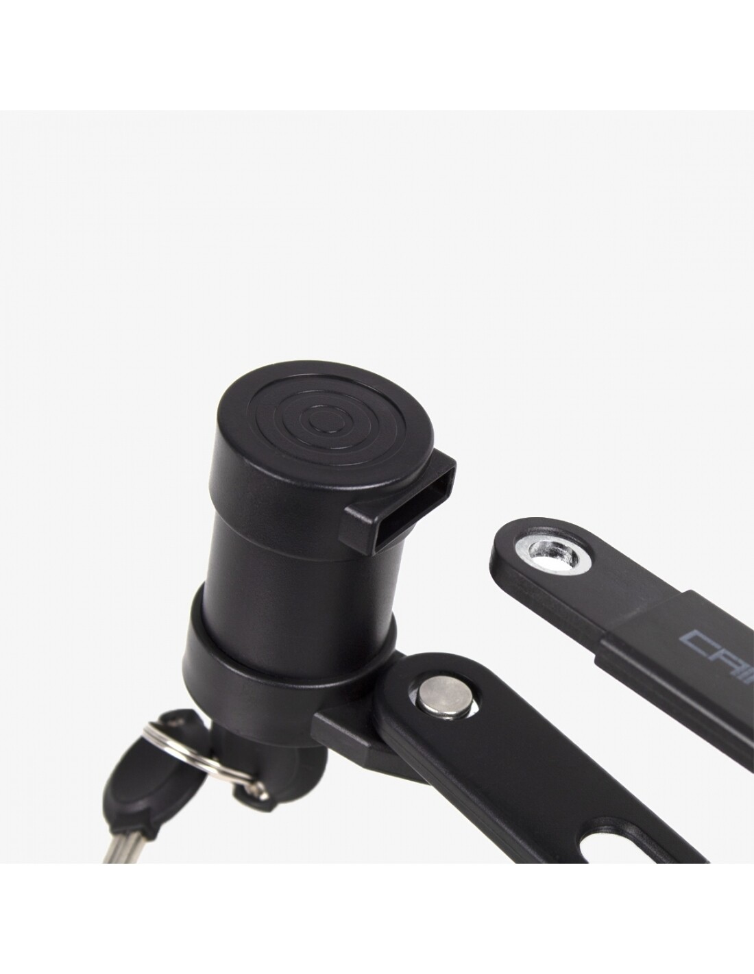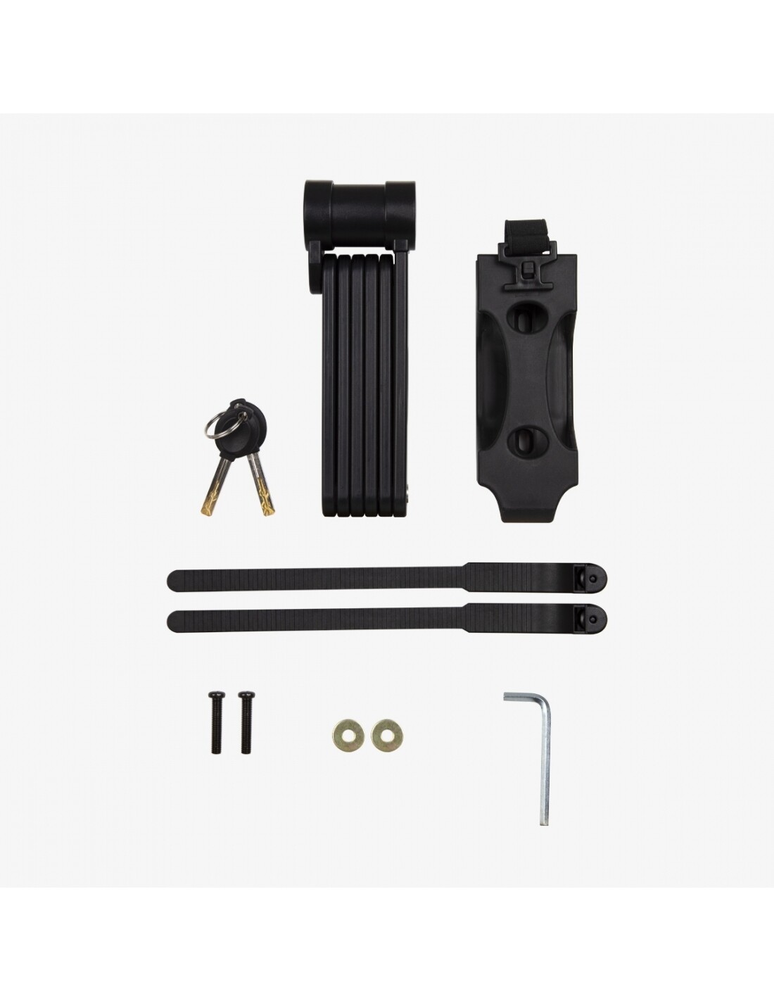 | Contiene Dos sistemas de fijación a la bici. Con tornillos en el lugar del bidón o con correas. Llave de seguridad reversible con hendiduras Material Barras de acero endurecido de 14 cm Cilindro anti-ganzúa y anti-taladro Estructura de barras unidas entre sí Características Peso: 712 g. Medidas desplegado: 780 mm. Medidas plegado: 170 x 55 mm. Medidas diámetro: 220 mm. Caja: 6 unidades |