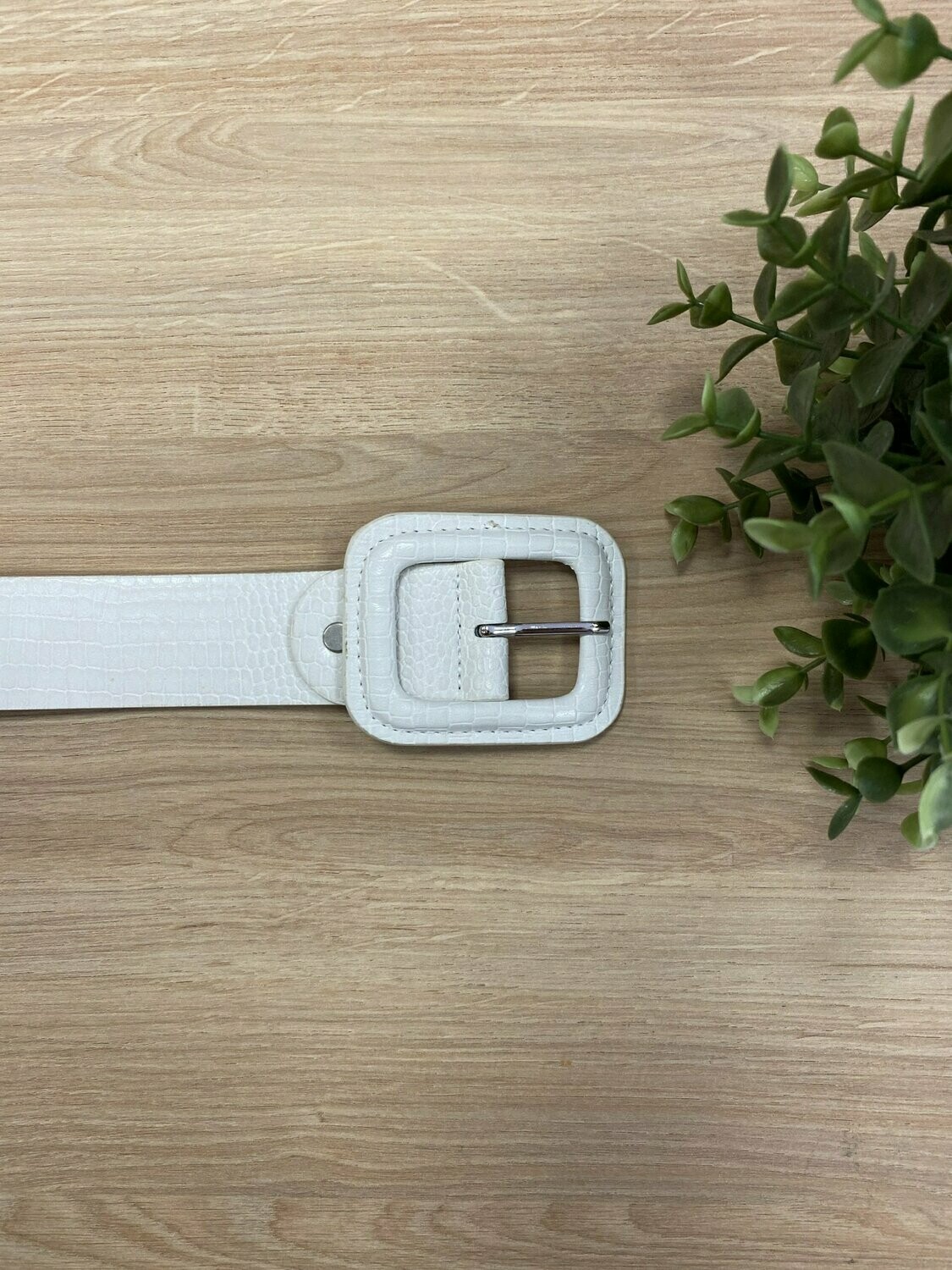 | Cinturón Blanco. Cinturón de color blanco con hebilla del mismo tacto y color. |