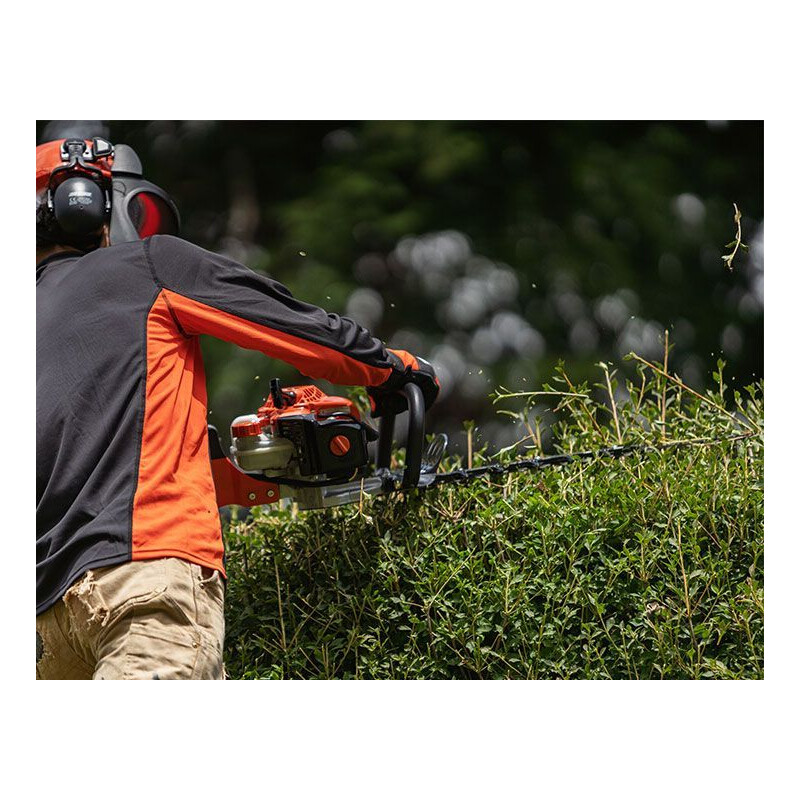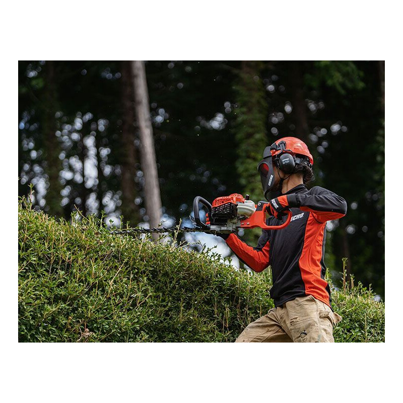 Cortasetos ultraligero de primer precioEl modelo ECHO HC 2020 de doble corte es la nueva referencia del mercado en cortasetos ligeros, con manillar fijo y doble cuchilla desplazable, ahora con un nuevo chasis. Con la fiabilidad que espera encontrar todo usuario ECHO. Incluye un protector superior que previene al usuario de posibles accidentes durante el trabajo y funda protectora de las cuchillas, para evitar el contacto con las mismas durante el transporte o almacenamiento de la máquina. Calidad profesionalFabricado con la solidez y robustez que caracteriza a los productos ECHO, el cortasetos HC 2020, por su potencia y comodidad, puede ser utilizado tanto por profesionales (empresas de mantenimiento y jardineros) como usuarios particulares. Su motor diseñado y fabricado en Japón cumple con la más estricta directiva comunitaria de emisiones (EUST5), con menor consumo de carburante, bajo nivel de ruidos y menos emisiones de escape. Incluye bomba de cebado para facilitar el arranque del motor. Detalles que marcan la diferenciaEl cortasetos ECHO HC 2020 tiene un carácter netamente profesional y su vida útil es muy larga, gracias a pequeños detalles que marcan la diferencia: giro del volante motor en sentido horario, para aspirar el aire lo más frio y limpio posible por la tapa del arranque; sujeción del mismo mediante chaveta independiente; filtro de aire profesional de fieltro; tornillos de la tapa de arranque no auto-roscantes; transmisión de tipo métrico. Son estos detalles los que nos permiten ofrecer hasta 5 años de garantía. Fácil mantenimientoEl cortasetos ECHO HC 2020 es de fácil mantenimiento, ya que presenta un fácil acceso a las partes clave de la máquina. Permite el acceso al filtro de aire sin necesidad de herramientas. A su vez, al estar construido con fieltro de máxima calidad garantiza el rendimiento y alarga la vida útil del motor. La transmisión engrasable favorece un mantenimiento mucho más fácil y mayor durabilidad. La mejor calidad de corteEl cortasetos ECHO HC 2020 incorpora cuchillas cortadas con láser y con afilado de precisión en ambas hojas, mucho más duraderas y eficientes que otros competidores, donde solo una cuchilla está afilada. El paso de cuchilla de 35 mm permite trabajar en las mejores condiciones con distintos tipos de setos. Ofrece corte japonés ajustable y de doble filo, para un corte de mejor calidad. Sus barras de soporte son más largas que las cuchillas, protegiendo así la punta de posibles impactos y su gran rigidez permite que el corte realizado se mucho más recto y preciso. |