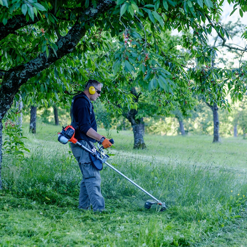 La profesional más ligeraLa desbrozadora ECHO SRM 2621 T ESU con reductora es el modelo más potente de su categoría. Su nuevo motor de alto rendimiento la convierte en la desbrozadora profesional ligera más potente del mercado. Gracias a su reductora “High-Torque” de alto par ofrece un 50% más de fuerza y permite trabajar con una superficie de corte hasta 4 veces mayor, con una desbrozadora de poco peso y bajo consumo. Permite realizar cualquier tipo de trabajo profesional de limpieza y mantenimiento en jardines. Es la máquina ideal para los jardineros profesionales y las brigadas de mantenimiento. Reductora exclusiva High TorqueCon un motor relativamente pequeño, esta desbrozadora es una máquina muy ligera y con bajos niveles de vibración, a la vez que muy potente. Esto es posible gracias a su reductora exclusiva “High Torque”. Con una relación de transmisión 1:2.07, el nuevo cabezal exclusivo de ECHO dobla el par disponible a la salida del reductor y ofrece excelentes niveles de par motor, hasta un 50% más que los modelos equivalentes. Máximo rendimiento con hilo de nailonLa desbrozadora ECHO SRM 2621 T ESU con reductora está especialmente desarrollada para trabajar con hilo de nailon, donde su rendimiento es netamente superior al de cualquier otra máquina, incluso trabajando con diámetros de hilo de nailon más gruesos. La estructura del cabezal con reductora incorpora cinco rodamientos de bolas para mayor resistencia y durabilidad. Permite hacer frente a una gama más amplia de tareas con sólo una desbrozadora porque más par significa más potencia de corte sin penalizar al usuario con el peso de modelos de mayor cilindrada. Potencia y tecnologíaSu motor de alta resistencia presenta un menor desgaste, lo que significa una mayor vida útil del mismo y durabilidad extendida. Su motor diseñado y fabricado en Japón cumple con la segunda fase de la estricta directiva comunitaria de emisiones (EUST5), con menor consumo de carburante, bajo nivel de ruidos y menos emisiones de escape. Su sistema de encendido electrónico CDI mejora el comportamiento de la máquina a cualquier régimen del motor y se ajusta perfectamente a cada condición de trabajo. El exclusivo sistema de arranque fácil ES-Start permite un rápido encendido con el mínimo esfuerzo. Comodidad de usoDisfruta de bajo nivel sonoro y tecnología integrada de bajas vibraciones, gracias al motor montado sobre silent-blocks, lo que la convierte en un modelo muy cómodo para trabajar durante largas jornadas. Se mantiene dentro de los niveles de vibraciones establecidos por la Directiva 2002/44/CE, siendo así un modelo muy atractivo para las autoridades locales y los grandes contratistas. Destaca su peso reducido, para menor fatiga del usuario. La importancia de los detallesFiltro de aire de papel de alto rendimiento de fácil limpieza y con prefiltro de esponja, de fácil acceso sin necesidad de usar herramientas, que permite intervalos de mantenimiento más largos y sencillos. Los cables de encendido están protegidos gracias al nuevo diseño de la cubierta del motor, evitando así averías. Con el mejor equipamientoLa desbrozadora ECHO SRM 2621 T ESU con reductora de manillar doble es adecuada para trabajar tanto con disco de corte como con hilo de nailon. Se entrega con un cabezal semiautomático F4 y disco metálico de 3 puntas, protector multifunción, arnés doble y kit básico de herramientas, para que puedas disfrutar del trabajo cómodamente y bien protegido. Todo está pensado para la máxima seguridad del usuario. |