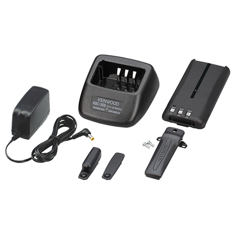 | Radio digital walkie TK-3701DE de uso libre dPMR446 y PMR446 de construcción robusta, listo para su uso inmediato. Dispone de 48 canales preseleccionados con 8 frecuencias analógicas y más de 32 frecuencias digitales con encriptador de voz. Incluye batería recargable, cargador de batería y clip para cinturón. |