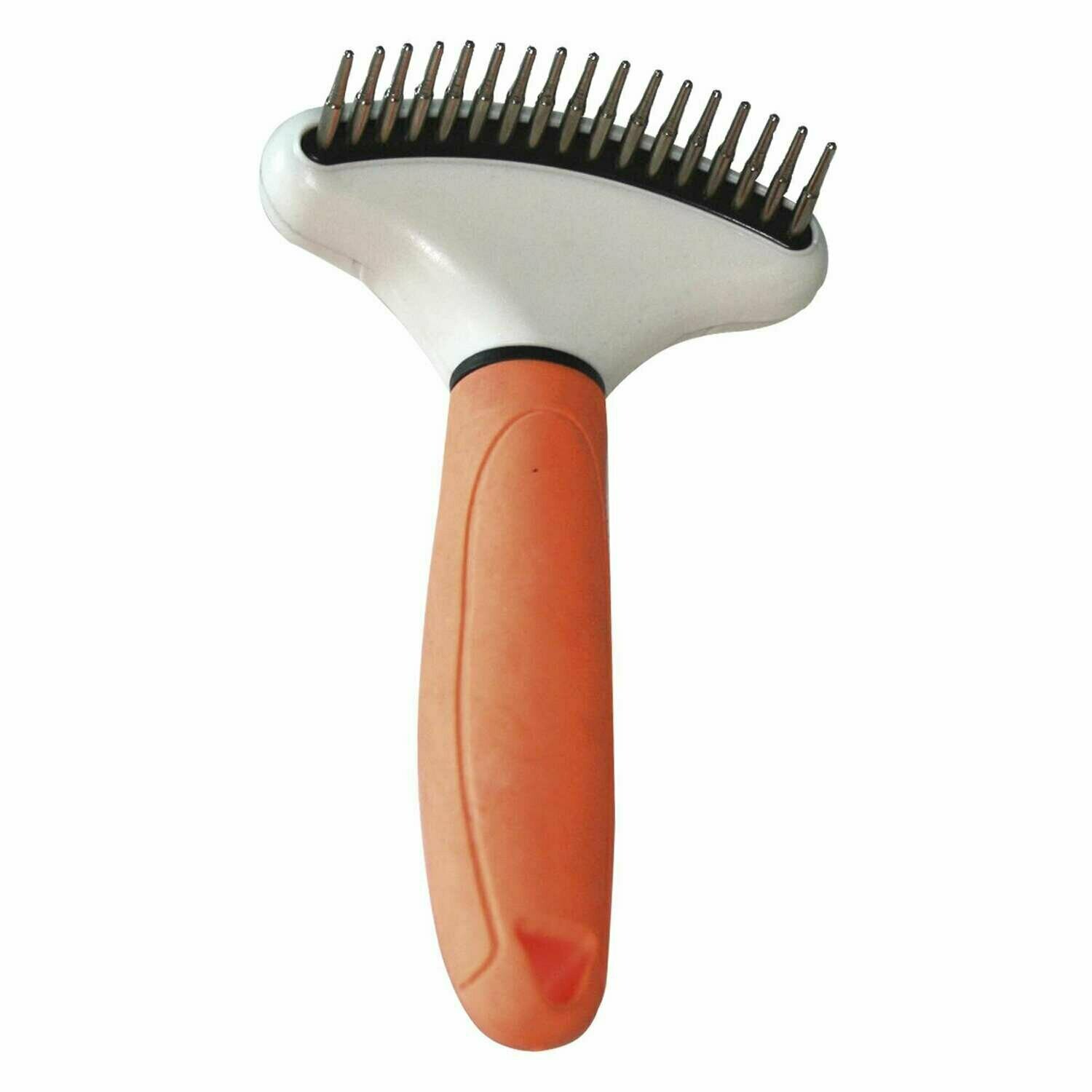 | Rastrillo con púas rotatorias y mango de plástico, ideal para razas de pelo largo y medio, desenreda fácilmente los nudos. |