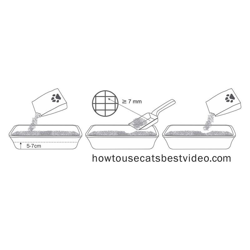 Consejos de utilización: Si vas a desechar la arena por el inodoro, por favor, hazlo solo en cantidades moderadas. Esta opción está pensada exclusivamente para los grumos que se forman con el uso diario. Desecha los grumos de uno en uno en el inodoro y deja que se humedezcan un poco. Después añade agua abundante para que los grumos se empapen bien. A continuación, desecha el grumo siguiente y así sucesivamente. Te resultará más sencillo si aplastas los grumos con una pala antes de tirarlos por el inodoro. |