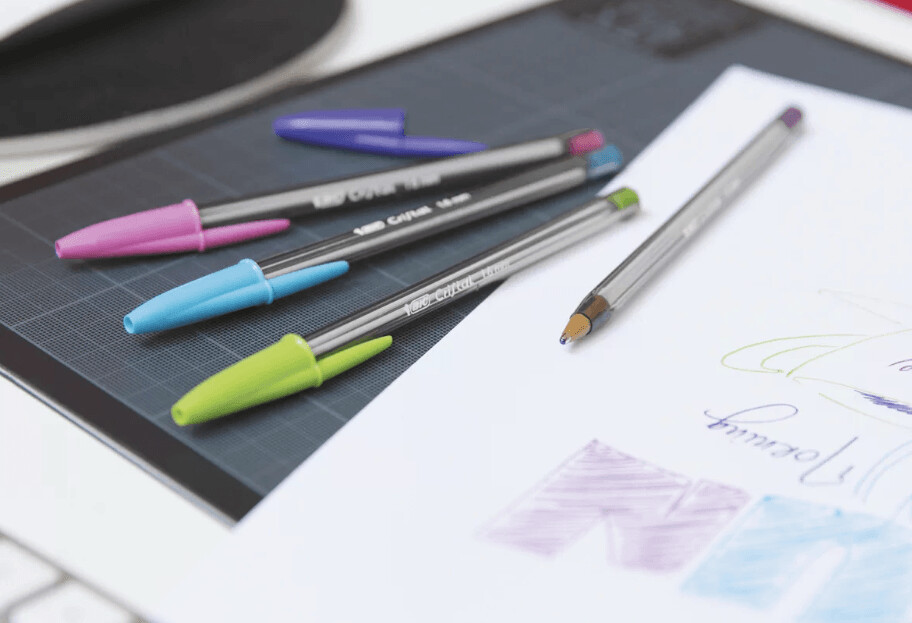 BIC® Cristal Fun Bolígrafo de punta de bola, punta de 1,6 mm, cuerpo translúcido, colores de tinta variados: Rosa, azul, verde, morado