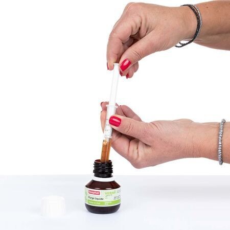 DescripciónBeaphar VERMIpure protege el sistema intestinal de perros y cachorros mediante la combinación de plantas tradicionalmente utilizadas para favorecer la expulsión de los parásitos internos. Gracias a sus ingredientes naturales, esta solución de VERMIpure ayuda a eliminar estos parásitos. A base de extractos naturales de plantas utilizadas por sus propiedades digestivas, la solución VERMIpure de Beaphar proporciona una mejor higiene digestiva. Esta solución líquida contiene manzanilla con propiedades digestivas, tomillo con propiedades antioxidantes, hojas de artemisa para una mejor higiene digestiva y ajo para facilitar la digestión y la eliminación. Agitar bien antes de usar. Con la jeringa graduada, administrar 0,5 ml de solución por kg y día durante 3 días consecutivos. La solución puede administrarse directamente en la boca del perro o mezclarse con la comida. Para una protección óptima, repetir cada 3 meses para los perros adultos y cada mes durante 6 meses para los cachorros a partir de los 2 meses de edad. InstruccionesLEER SIEMPRE EL ENVASE DEL PRODUCTO ANTES DE UTILIZARLO. Agitar bien antes de usar. Con la jeringa graduada, administrar: 0,5 ml por kg de peso, durante 3 días consecutivos. Administrar el contenido de la jeringa directamente en la boca del animal o mezclado con la comida. Por ejemplo, para un perro de 10 kg, dar 1 jeringa de 5 ml al día durante 3 días. Repetir cada 3 meses. Utilizar la jeringa para introducir la solución directamente en la boca de la mascota. Como los purgantes no son tan eficaces como los antiparasitarios veterinarios, es aconsejable repetir el tratamiento con mucha regularidad, no utilizarlo en caso de infestación grave y cambiar los antiparasitarios con frecuencia con el consejo de su veterinario. Es posible alternar productos naturales y veterinarios. Alimentación complementaria para los animales. Mantener fuera del alcance de los niños. No superar la dosis diaria recomendada." |