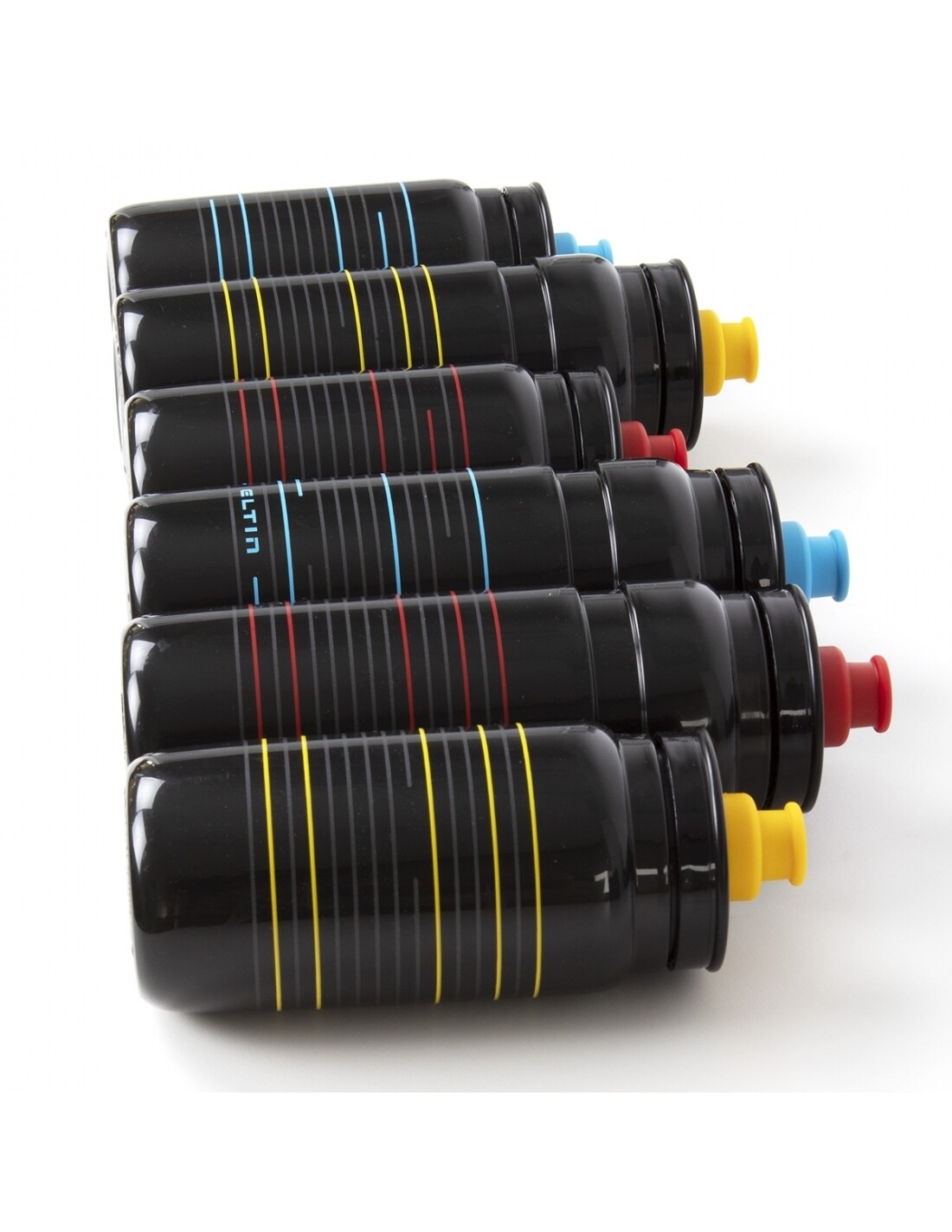 | Nuestro bidón de bicicleta Pro 750ml está fabricado con el mismo material que usan los equipos World Tour. Disponible también en 550ml y en tres combinaciones de negro y gris con rojo, amarillo y azul. Elige tu color favorito y siéntete como un auténtico profesional cada vez que eches mano al bidón. · Capacidad: 750 ml · Diámetro: 74 mm · Peso: 54g · Apto para lavavajillas (T. máx. = 40°C) · Temperatura máxima del líquido 40°C. MATERIAL DE CONSTRUCCIÓN · Cuerpo: Material plástico innovador, inodoro, suave y duradero. · Tapón: Polipropileno apto para uso alimentario y caucho termoplástico apto para uso alimentario. CARACTERÍSTICAS · El diseño y la fabricación se han realizado con espesores variables según las funciones específicas de cada una de las partes del bidón, garantizando una ligereza récord. · De apariencia muy compacta, proporciona una reserva de 750ml. Óptima en cuadros inclinados o cuando se montan dos portabidones en la bicicleta. · Con un diámetro estándar de 74 mm se puede utilizar con todos los portabidones tradicionales del mercado. En la parte superior, el cuerpo de la botella tiene un rebaje que mejora la estabilidad del producto en el portabotellas durante la carrera. · La tapa se caracteriza por un diseño ergonómico y está fabricada en multimaterial. Garantiza un flujo abundante del líquido gracias a la válvula inodora e insípida. · Ideal para uso en competición ya que cuenta con: - Válvula push-pull ampliada para garantizar la mayor ergonomía y facilidad de apertura y cierre durante la carrera. - Desenroscado rápido y sencillo para limpiar y rellenar la botella. · La superficie del cuerpo de la botella cuenta con un agarre especial que la hace más segura y fácil de usar en todas las condiciones (competiciones, todoterreno, etc.). · El cuerpo del bote es especialmente flexible y fácil de deformar con una ligera presión de la mano para facilitar la salida del líquido. FACILIDAD DE USO · El contenedor tiene una boca un 20% más grande en comparación con el estándar para facilitar el llenado con suplementos líquidos y / o en polvo y facilitar la limpieza. SEGURIDAD ALIMENTARIA · El recipiente cumple con las normas europeas CE y estadounidense FDA para el contacto con alimentos. SIN BPA · Los componentes del envase están completamente libres de BPA (Bisfenol A). RECICLABILIDAD · Los materiales utilizados son 100% reciclables a través de los canales de reciclaje habituales. |