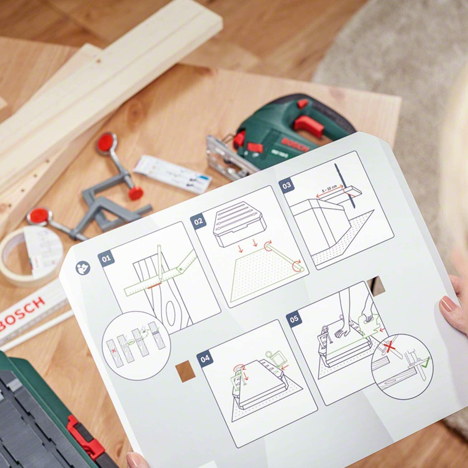 Bosch Caja de herramientas SystemBox con Banco de trabajo integrado (tamaño S, accesorios para sierras de calar Bosch PST 700, en caja)