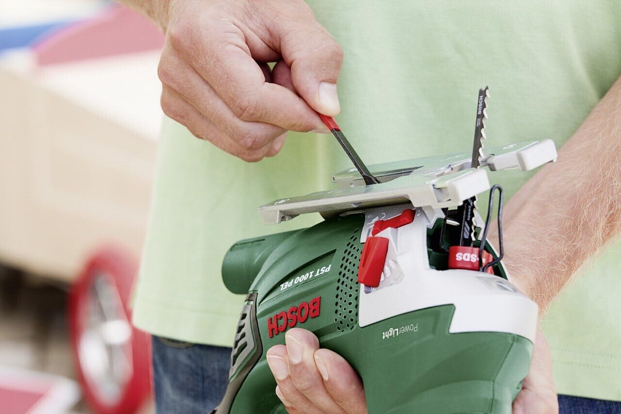 Bosch PST 900 PEL - Sierra de calar, SDS, función de soplado, maletín, profundidad de corte 90 mm, 620 W + Pack de 10 cuchillas de sierra caladora