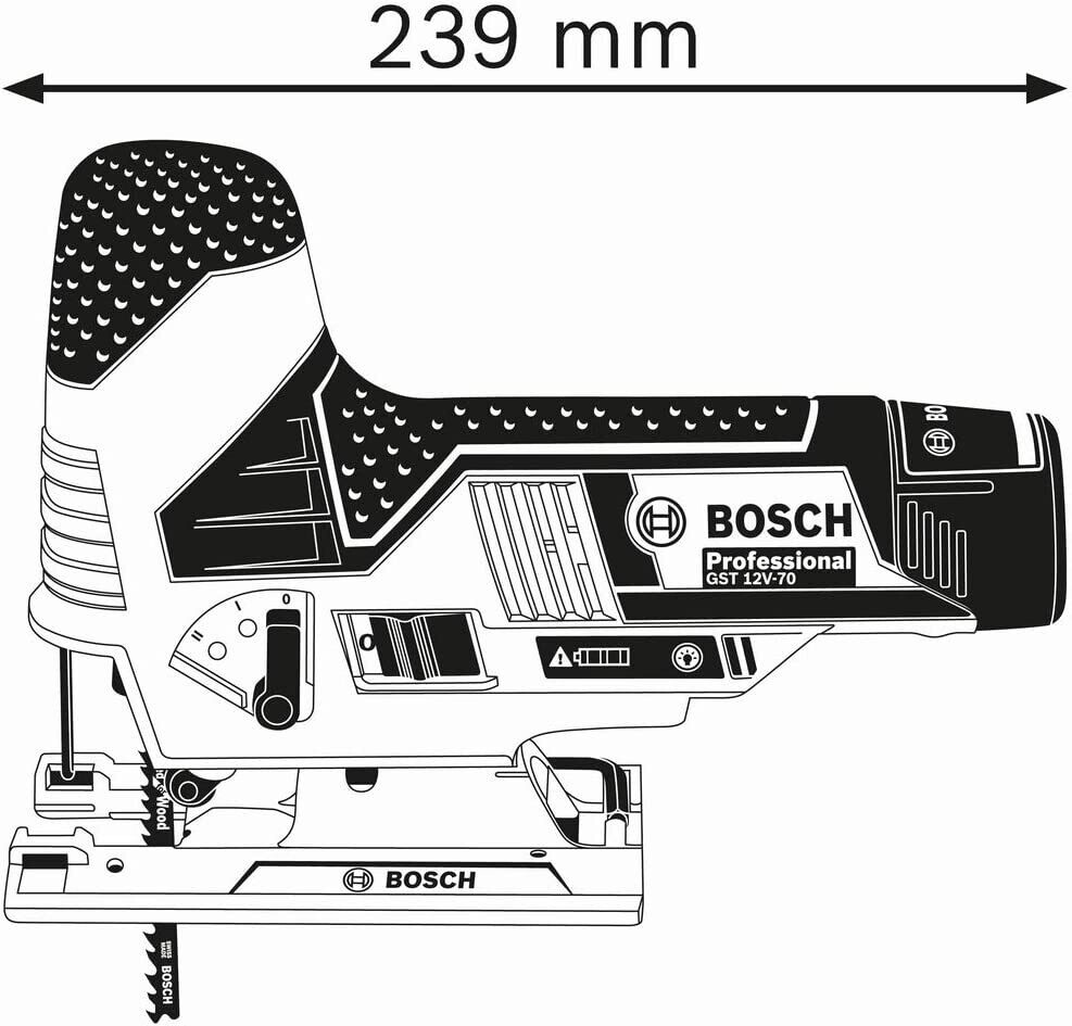 Bosch Professional 12V System GST 12V-70 - Sierra de calar a batería (1500 – 2800 cpm, profundidad de corte 70 mm, sin batería, en L-BOXX)