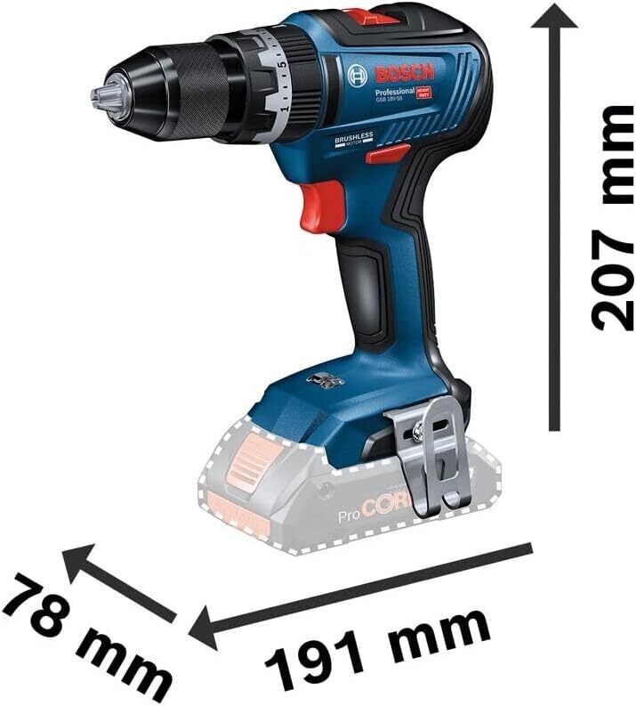 Bosch Professional 18V System GSB 18V-55 - Taladro percutor a batería (Brushless, 55 Nm, 2 baterías x 2.0 Ah, set 35 acc. impacto, en maletín)