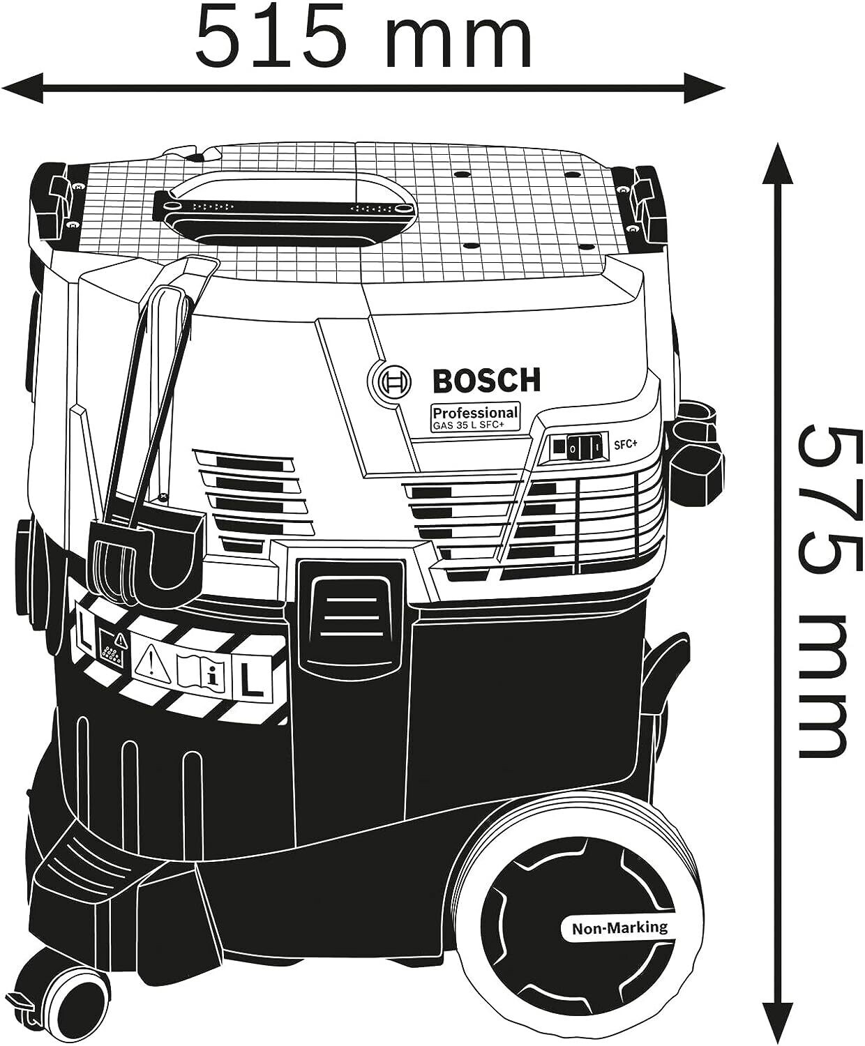 Bosch Professional GAS 35 L SFC+ - Aspirador seco/húmedo (1200 W, 254 mbar, depósito 35 l, clase polvo L, manguera 3 m)