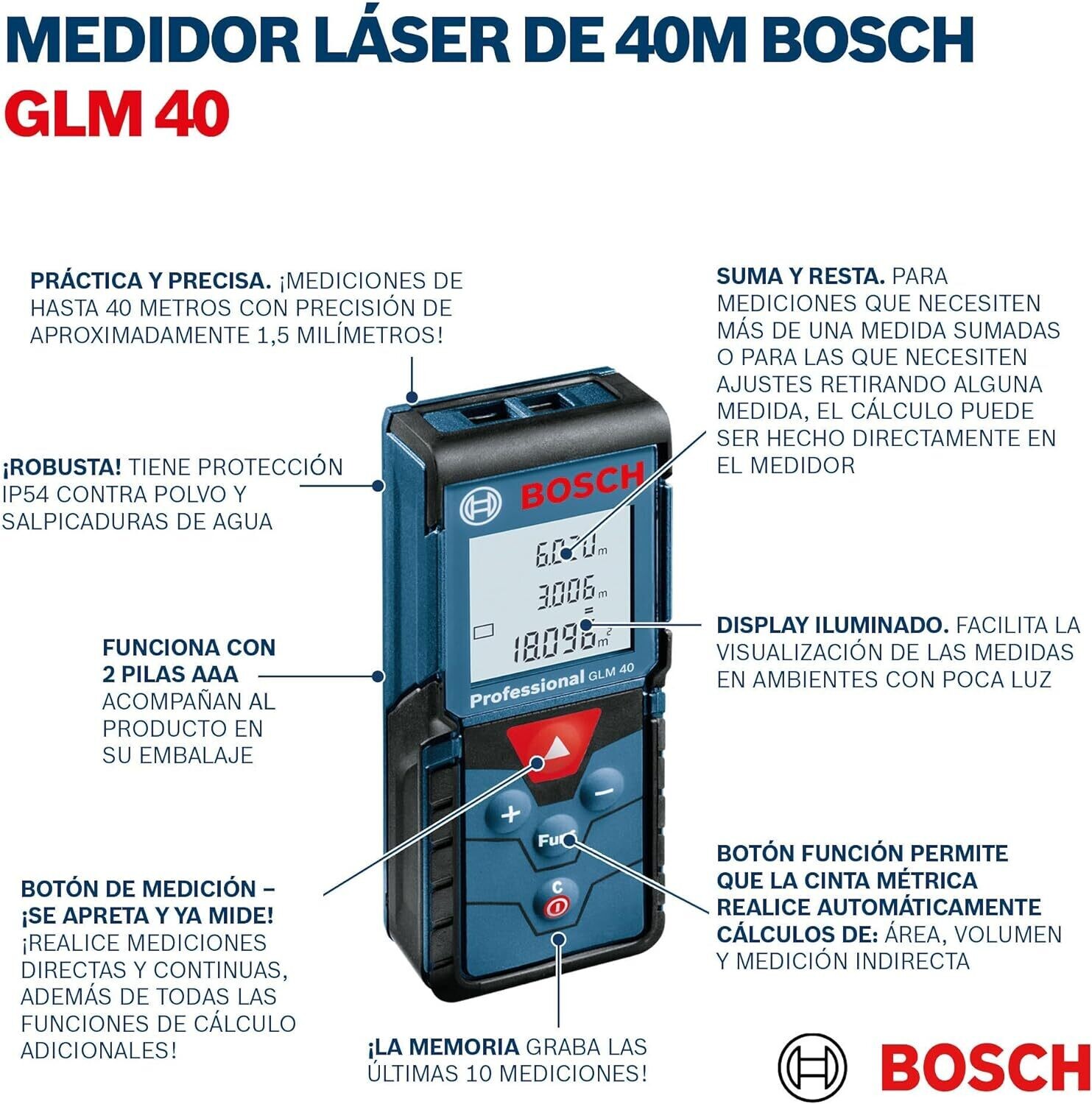 Bosch Professional Medidor láser de distancia GLM 40 (función de memoria, máx. distancia: 40 m, 2 pilas de 1,5 V, funda)