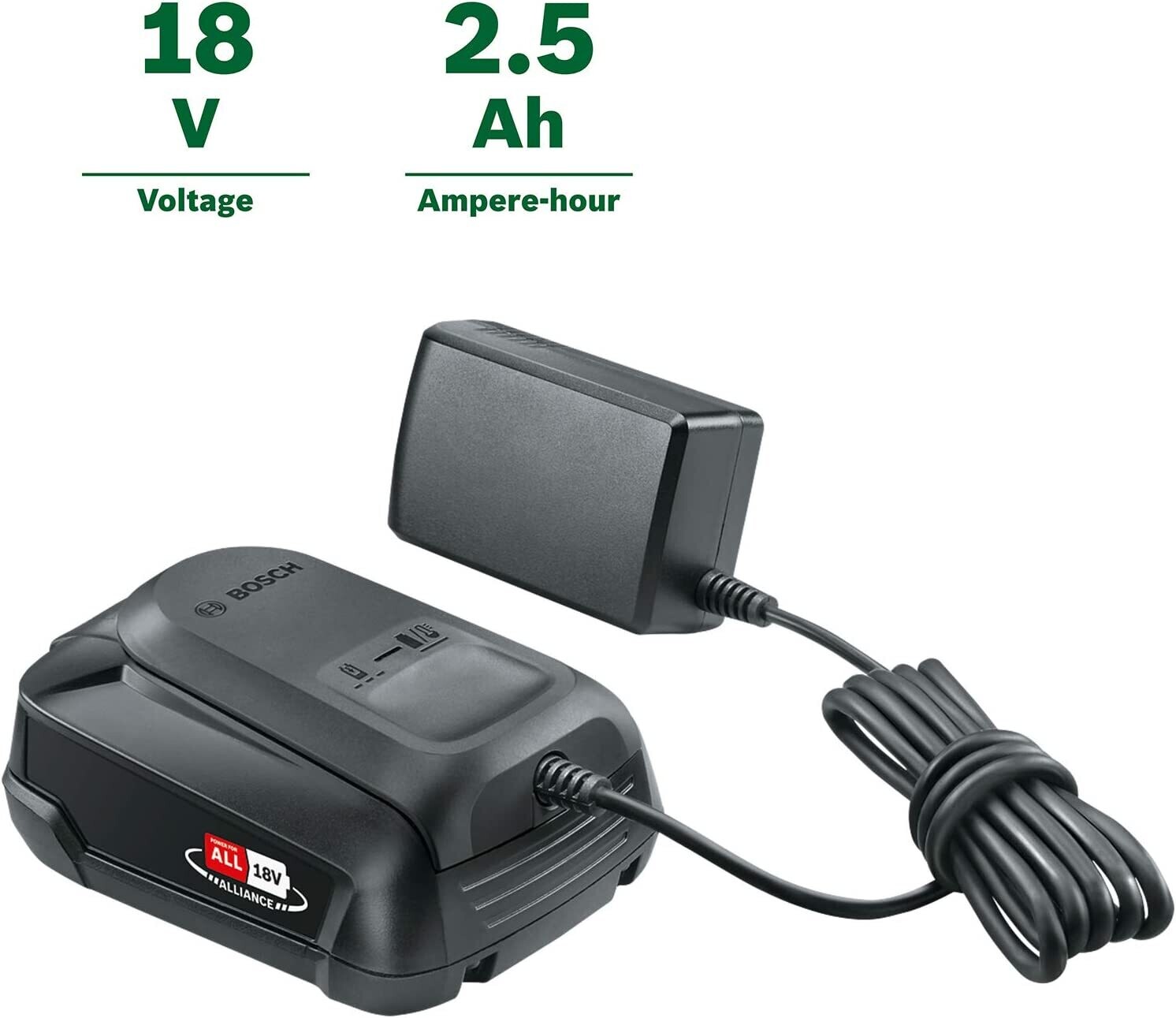 Bosch kit de iniciación de batería y cargador de 18 V (sistema de 18 voltios, batería de 2,5 Ah, cargador en caja)