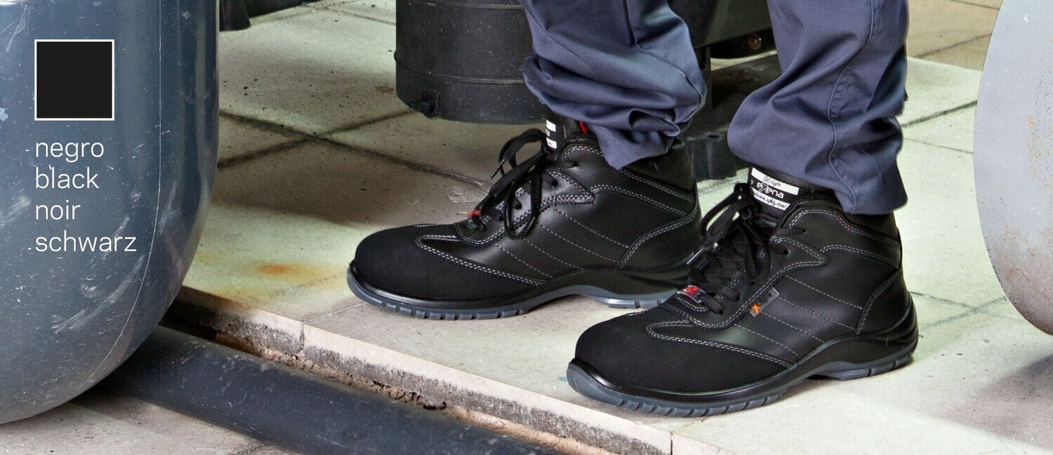 | Bota con puntera de seguridad y plantilla antiperforación no metálicas, con cierre por cordones, lavable en frío, corte de microfibra forrada interiormente, áltamente TRANSPIRABLE con gran capacidad de absorción de humedad y rápido secado. Horma recta de puntera redondeada. Contrafuerte de dureza suficiente para sujetar el calcáneo. Plantilla de tejido sobre espuma de poliuretano con tratamiento antibacterias y carbón activado. Suela de poliuretano antideslizante de gran coeficiente en seco y húmedo, con resaltes acanalados en la suela para facilitar la evacuación de líquidos. NormativaCertificado CE, norma EN-20345. Nivel de protección S3. S3 = Puntera de seguridad 200J + Plantilla antiperforación + Calzado antiestático + absorción de energía en el talón + material de empeine hidrofugado + antideslizante en acero y glicerina como lubricante. Color: Negro |