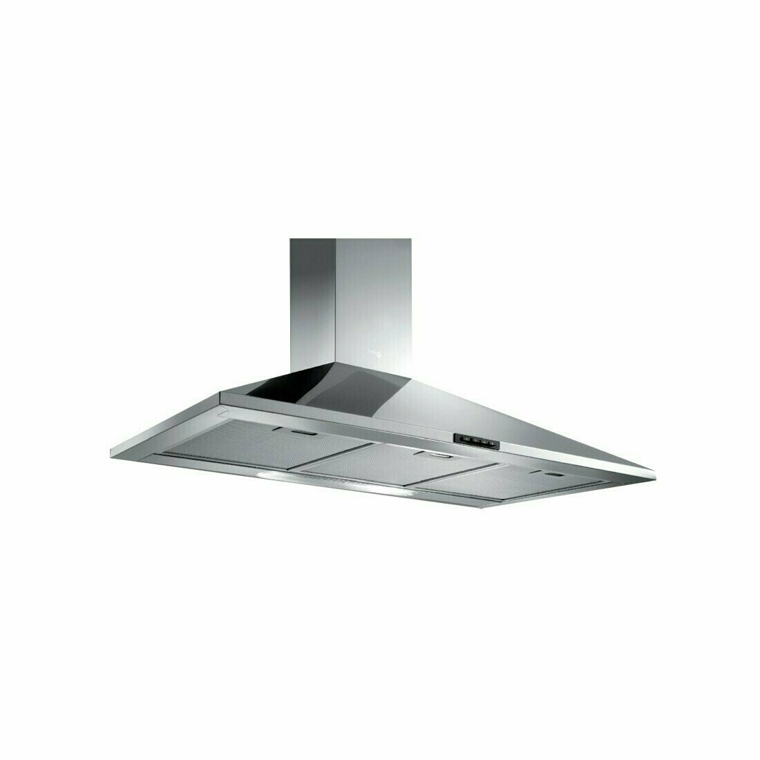 FICHA TÉCNICA: Ancho: 600 mm Profundidad: 450 mm Color del producto: Acero inoxidable Número de velocidades: 3 Materiales: Acero inoxidable Cantidad de lámparas: 2 lamps Tipo de lámpara: Halógeno Tipo de control: Botones Tipo de extracción: Canalizado Máxima capacidad de extracción: 368 m³/h Filtro a prueba de Lavavajillas: Si Velocidad intensiva: No Tipo de filtro de grasa: Metal Tipo: Montado en pared Altura (máx.): 86,2 cm Altura (min.): 65,2 cm Diámetro de la conexión de escape: 15 cm Ubicación de escape: Superior Pantalla incorporada: No Nivel de ruido (baja velocidad): 45 dB Nivel de ruido (alta velocidad): 61 dB Altura sin chimenea: 19,7 cm Carga conectada: 176 W Filtro anti-olores: Si Motor incluido: Si Presión (Pa): 95 Filtro lavable: Si Ancho: 60 cm Color: Acero Inoxidable Capacidad de Extracción: De 301 m³/h a 400 m³/h Nivel Sonoro: Medio Diseño: Piramidal Clase de eficiencia de energía: E Consumo de energía anual: 118 kWh Clasificación eficiencia dinámica de fluidos: F Clasificación de eficiencia lumínica: G Clasificación de eficiencia de filtrado de grasas: C Potencia de bombilla: 28 W