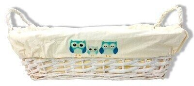 CESTA RECTANGULAR MIMBRE BLANCA BUHO AZUL